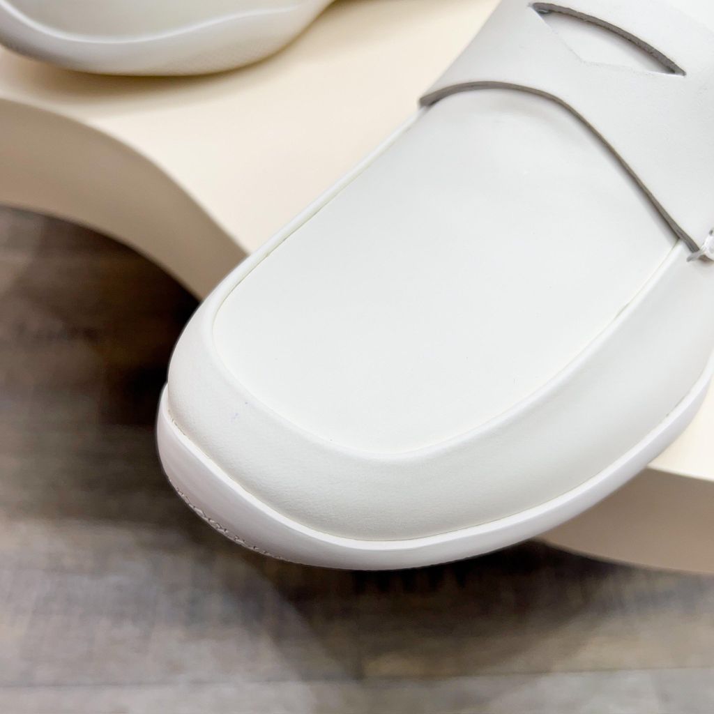 • Thiết kế & dấu ấn: phom loafer thể thao hiện đại; quai bản tối giản ôm mu bàn chân; logo tam giác men kim loại đặt tinh tế ở má ngoài; mũi bo mềm; đế liền khối dập logo, chi tiết gót nổi bật.
