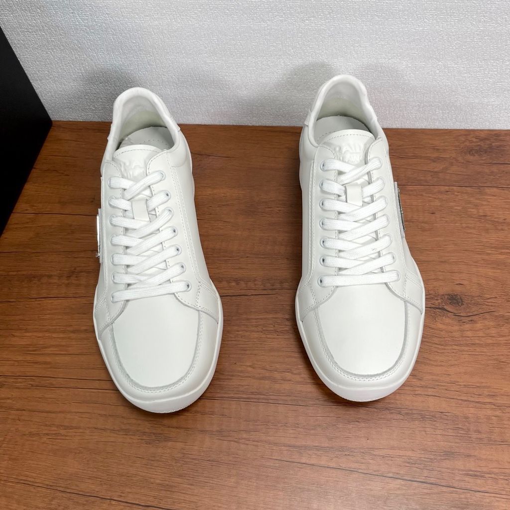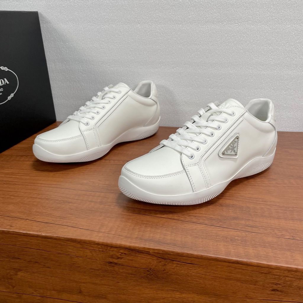 GIÀY NAM PRAD* SNEAKER DA BÊ TRẮNG | LOGO TAM GIÁC KIM LOẠI 2200k