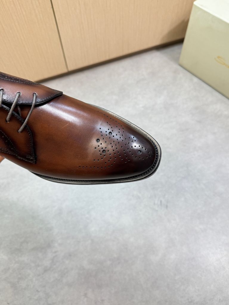 • Tông nâu chuyển sắc thủ công, bề mặt patina ấm sang; mũi giày chạm lỗ brogue tinh xảo tạo điểm nhìn lịch lãm.