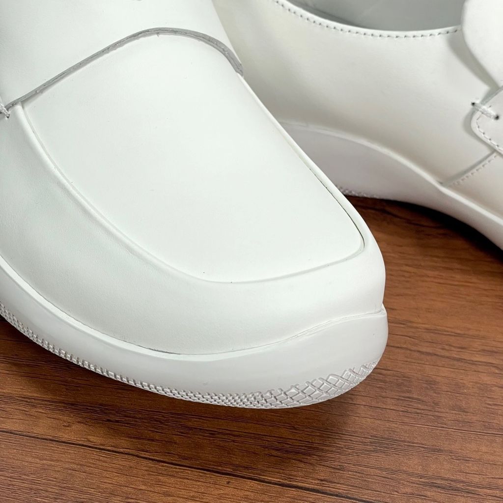 • Kiểu loafer không dây, mũi tròn vừa phải, phom gọn tôn dáng.