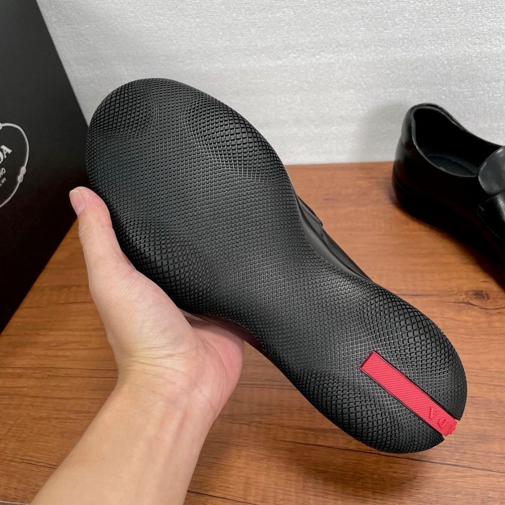 GIÀY NAM SLIP ON PRAD* THỂ THAO DA BÊ – GÓT LOGO ĐỎ 3.5CM* 2200k