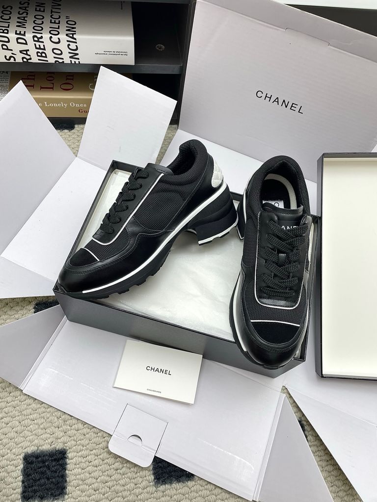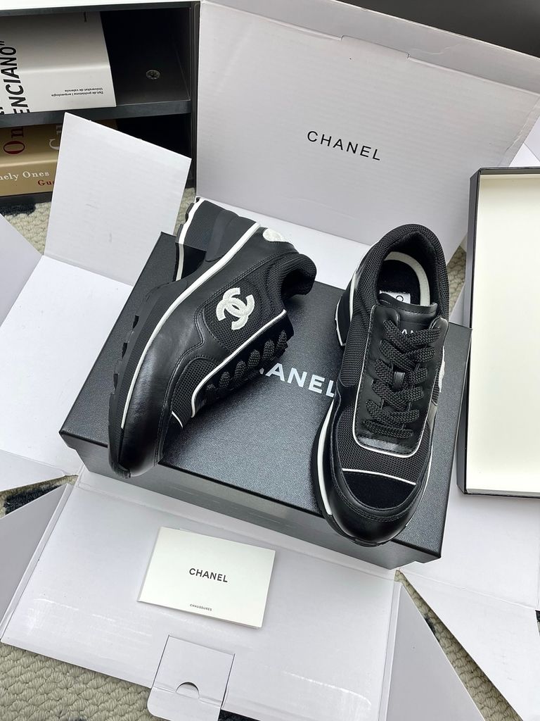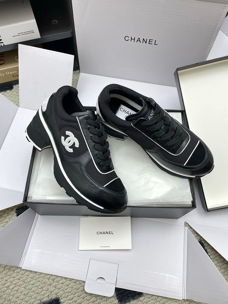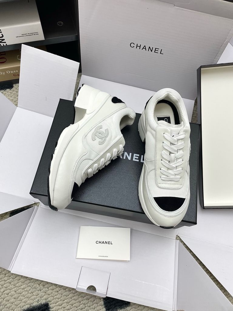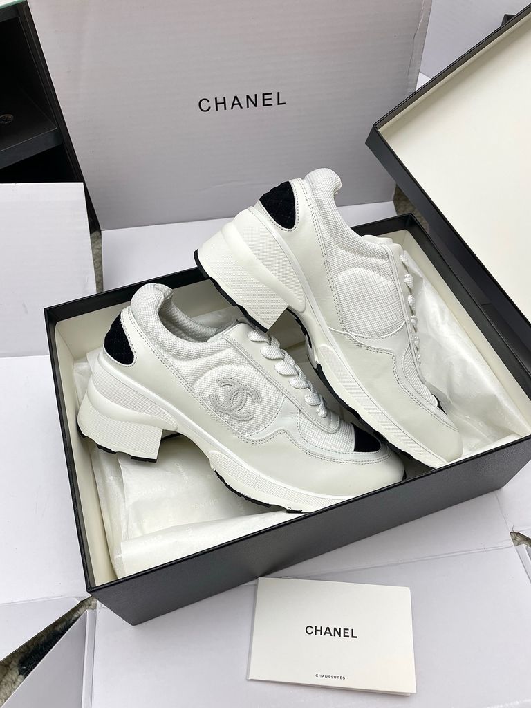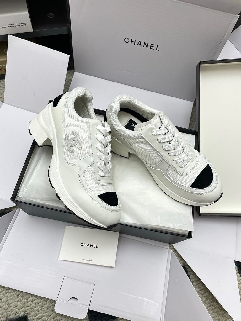 GIÀY NỮ CHA* SNEAKER “PANDA” TRẮNG-ĐEN MŨI ĐEN, NÂNG 4CM