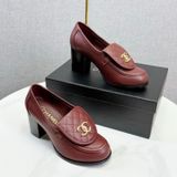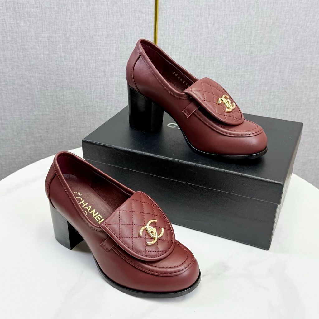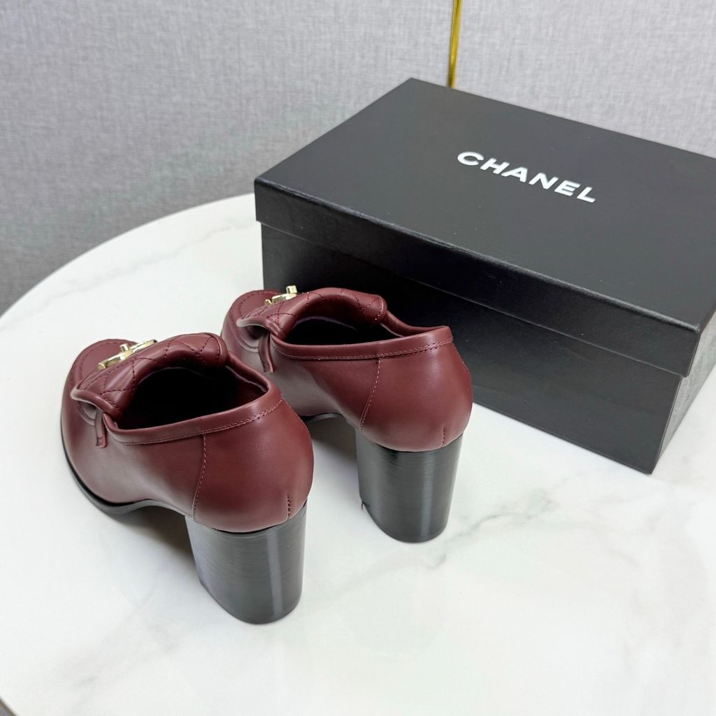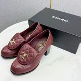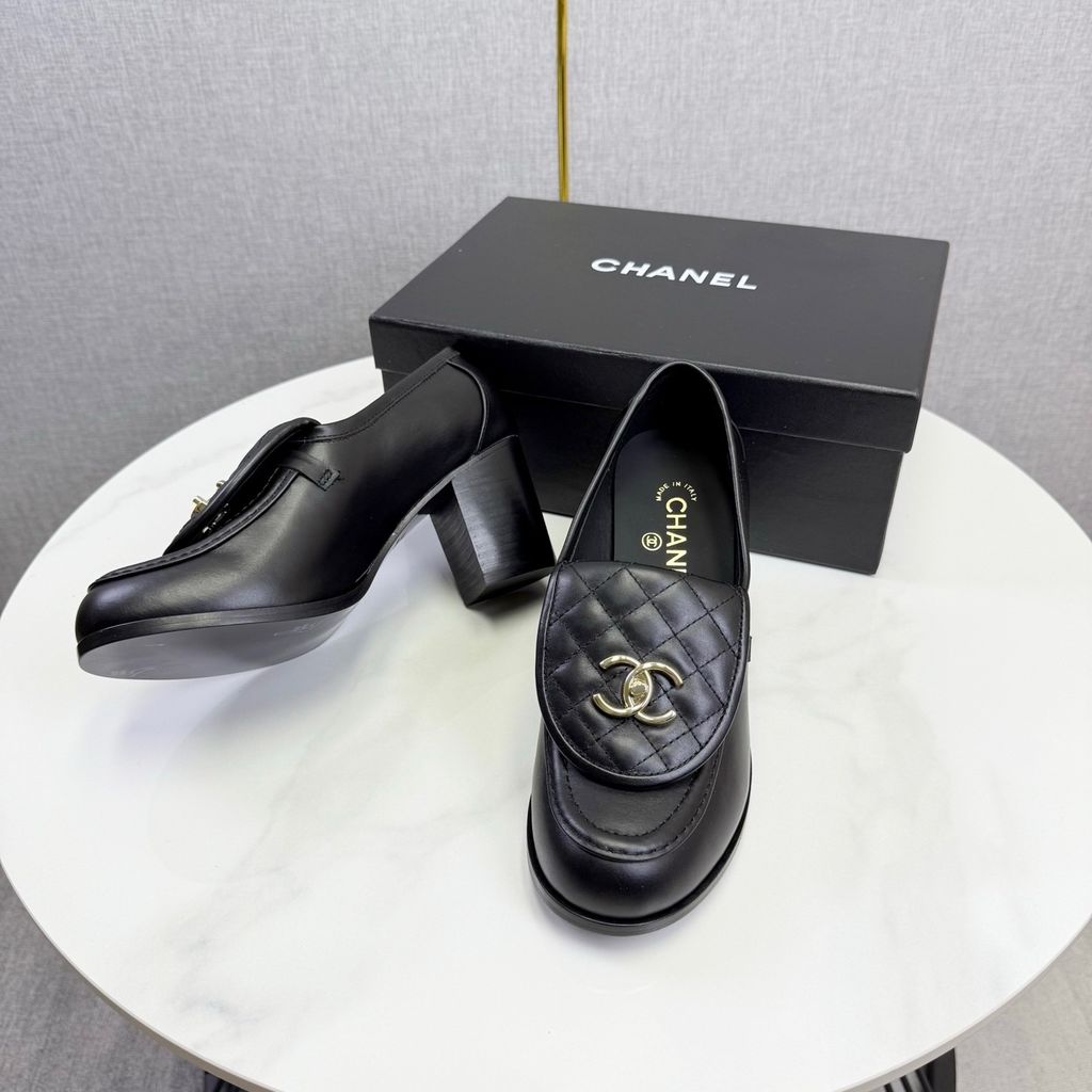 GIÀY NỮ CHANE* LOAFER GÓT CAO TRẮNG LOGO VÀNG 1850k (HÀNG ORDER QUỐC TẾ)