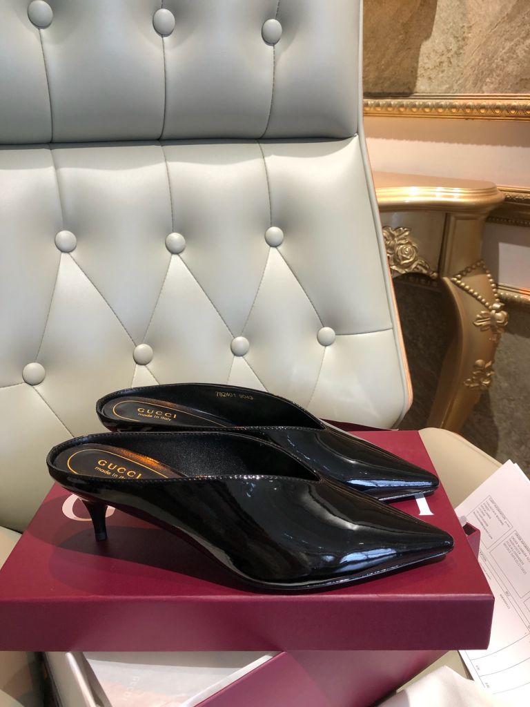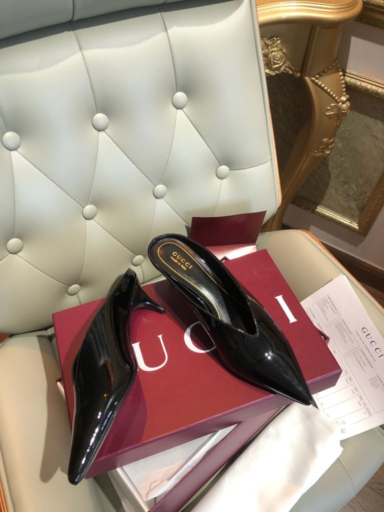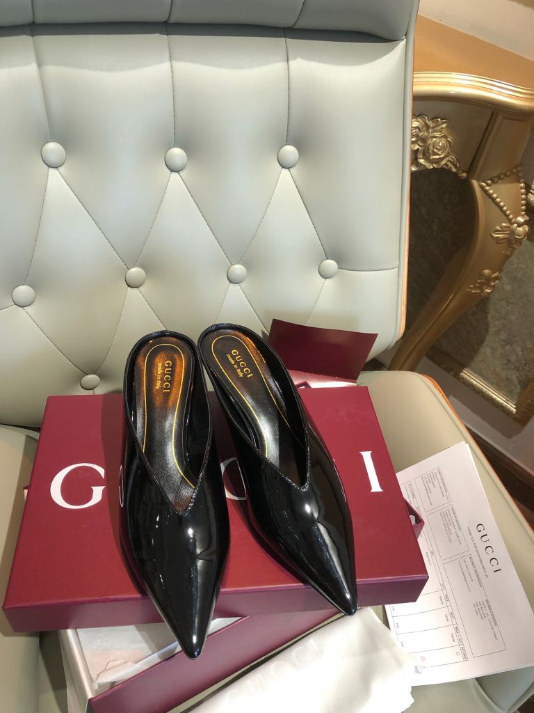 GIÀY NỮ GUCC* 97 HEELED MULE DA BÓNG NGÀ – MŨI NHỌN, V-CUT TÔN CHÂN, GÓT 5.5CM 1700k (HÀNG ORDER QUỐC TẾ)
