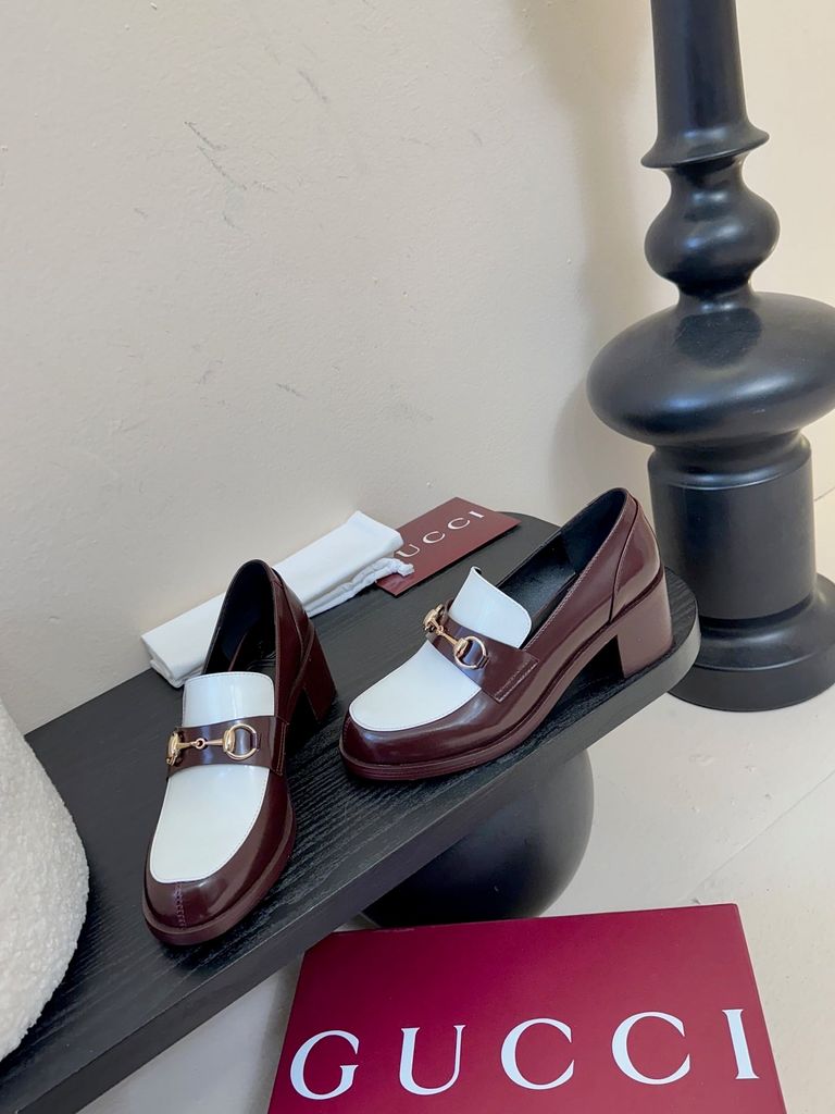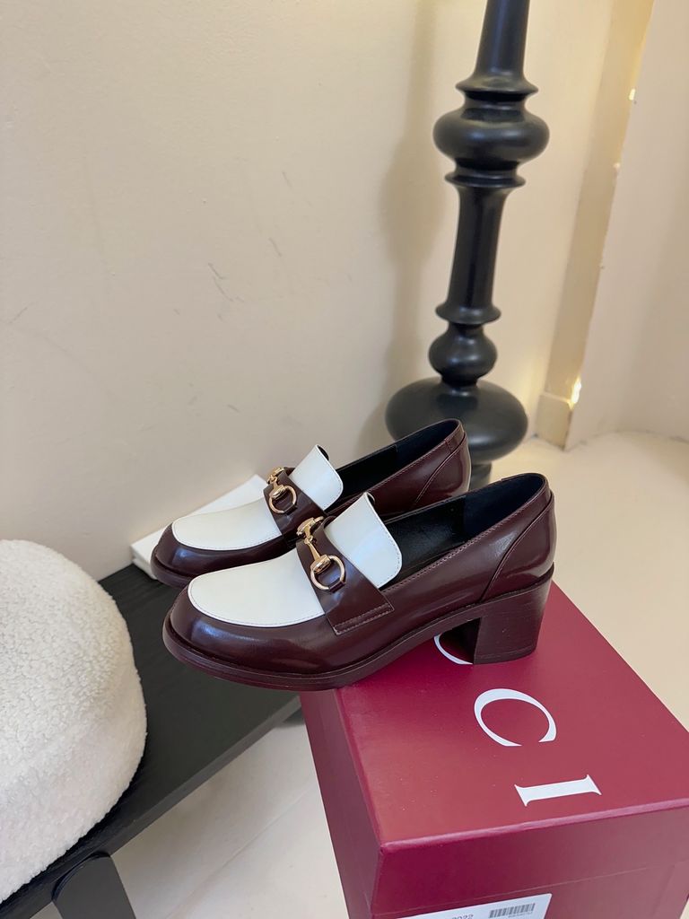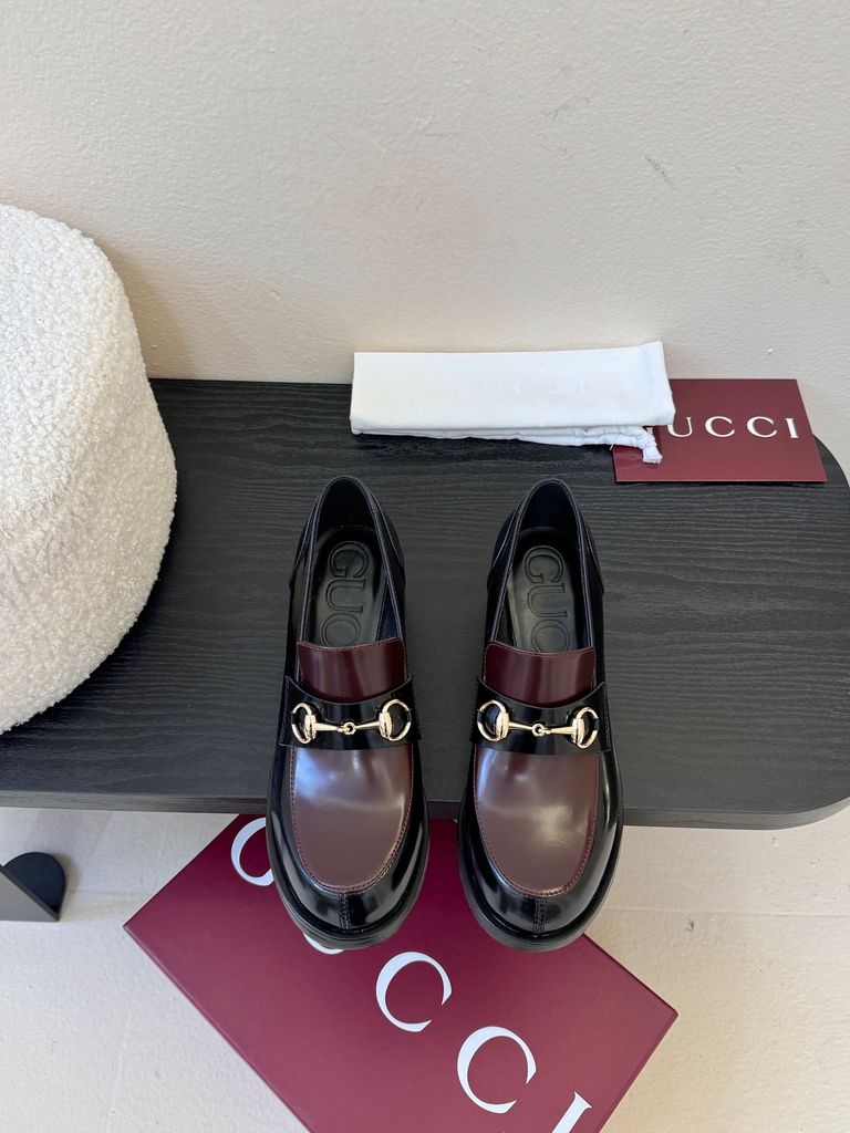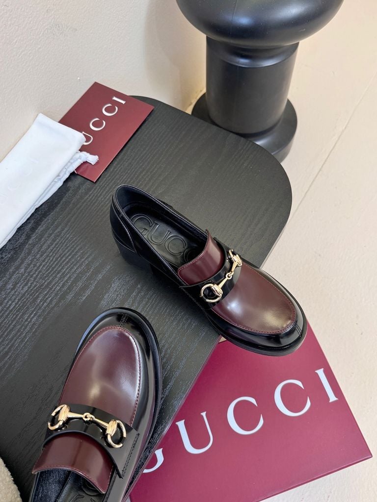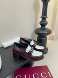 GIÀY NỮ LOAFER GUCC* GÓT TRUNG 5.5CM PHỐI ĐỎ RƯỢU – MÓC NGỰA VÀNG, PHIÊN BẢN THU 2050k (HÀNG ORDER QUỐC TẾ)