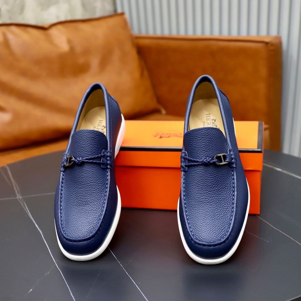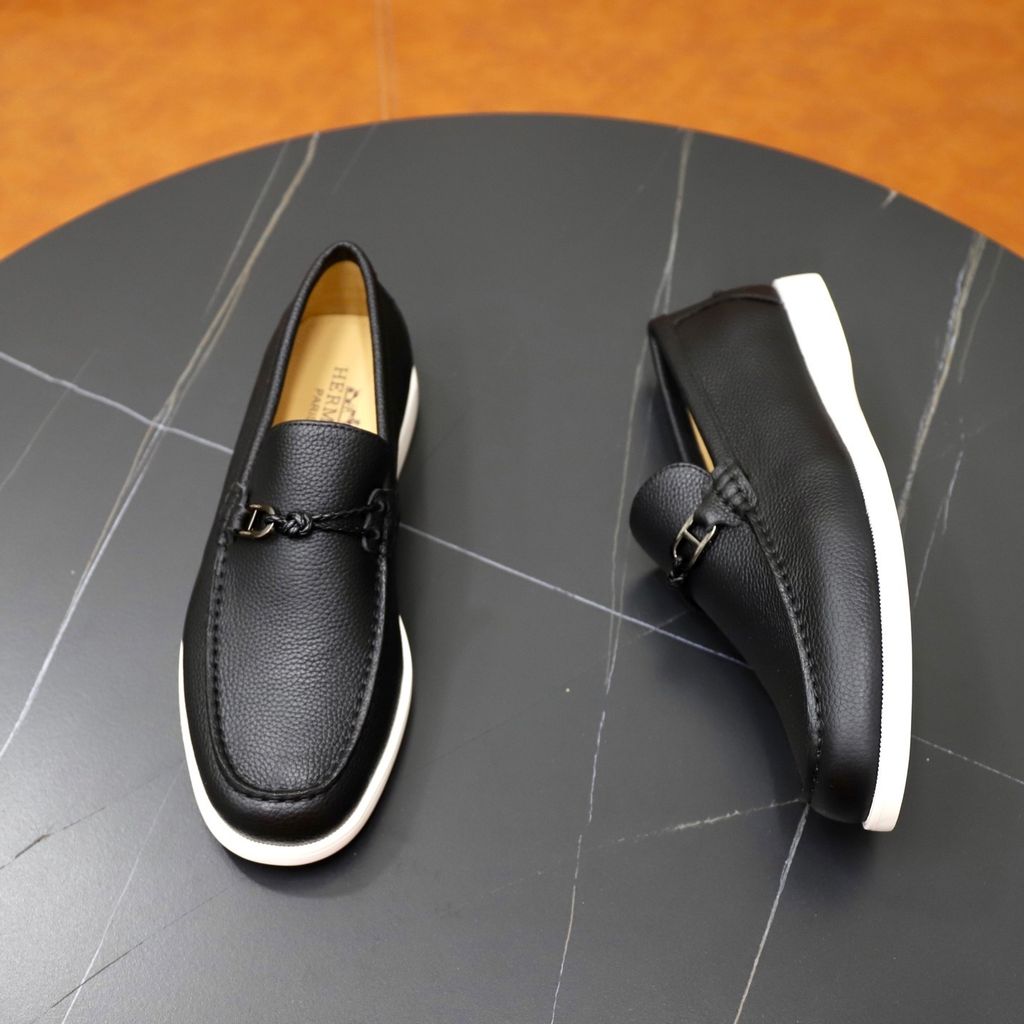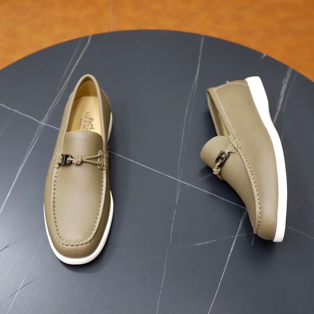 GIÀY SLIP ON NAM HERM* H-BUCKLE, DA BÒ VÂN HẠT – ĐẾ NHẸ 3CM 1800k (HÀNG ORDER QUỐC TẾ)