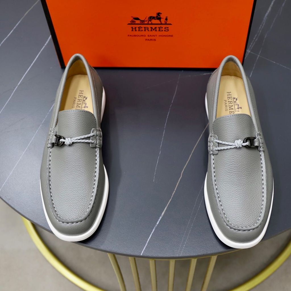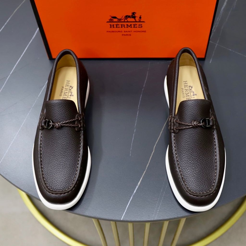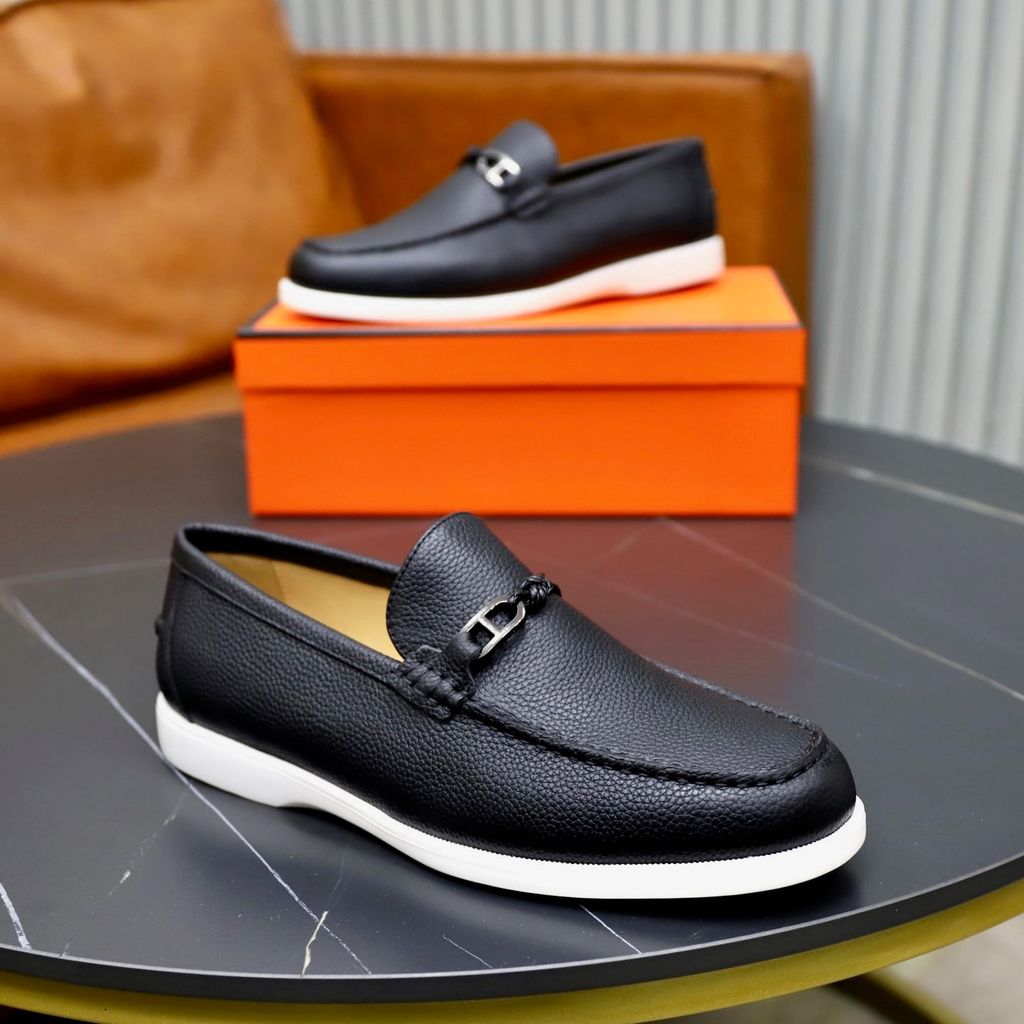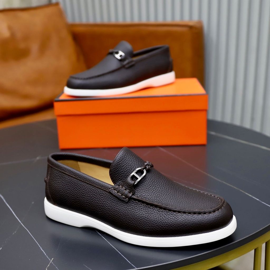 GIÀY SLIP ON NAM HERM* H-BUCKLE, DA BÒ VÂN HẠT – ĐẾ NHẸ 3CM 1800k (HÀNG ORDER QUỐC TẾ)