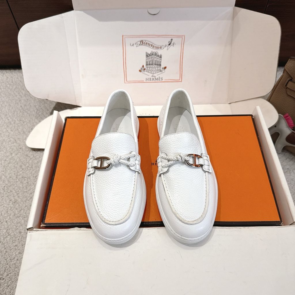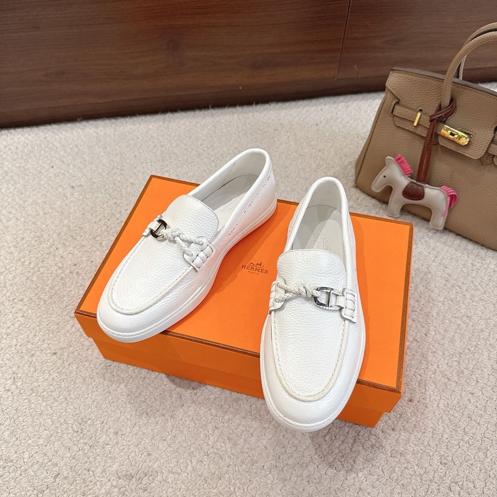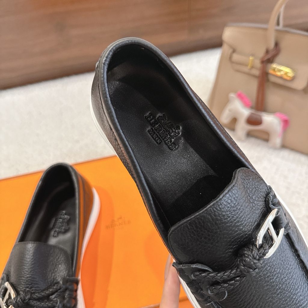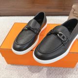 • Thân giày da dập vân sang trọng, điểm nhấn khóa kim loại tinh xảo trên mu giày, nhận diện đẳng cấp HERM*.
