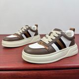 Phiên bản sneaker da nam mùa Thu Đông 2025 với phối màu nâu – trắng – caramel siêu đẹp, nhìn là muốn xuống tiền. Dáng thể thao trẻ trung, mang lên chân rất gọn và sáng tổng thể outfit.