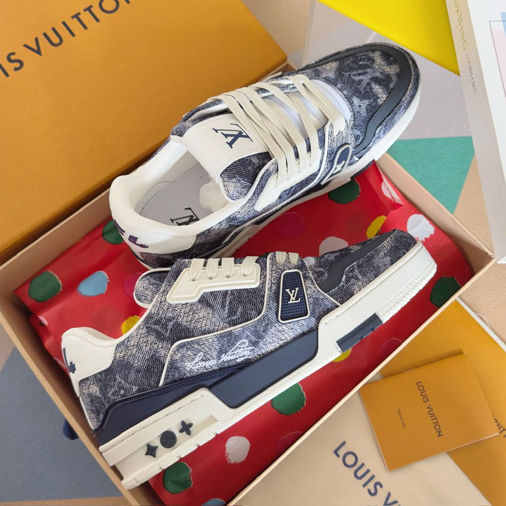 GIÀY SNEAKER UNISEX LV* TRAINER MONOGRAM DENIM STREET LUX