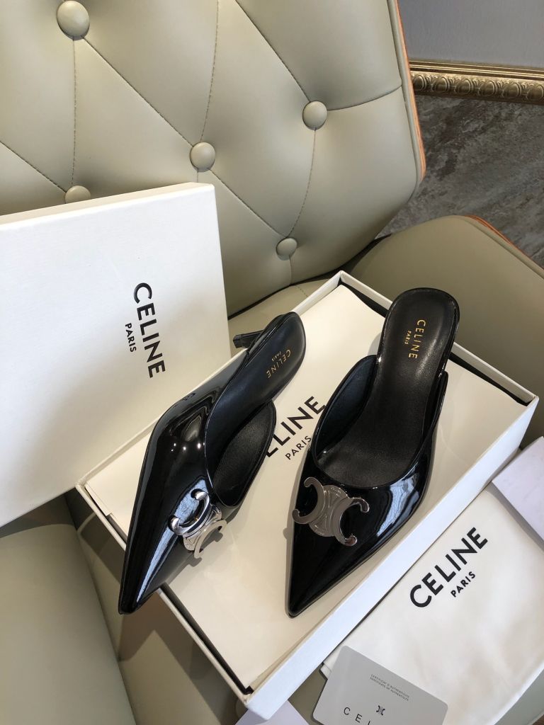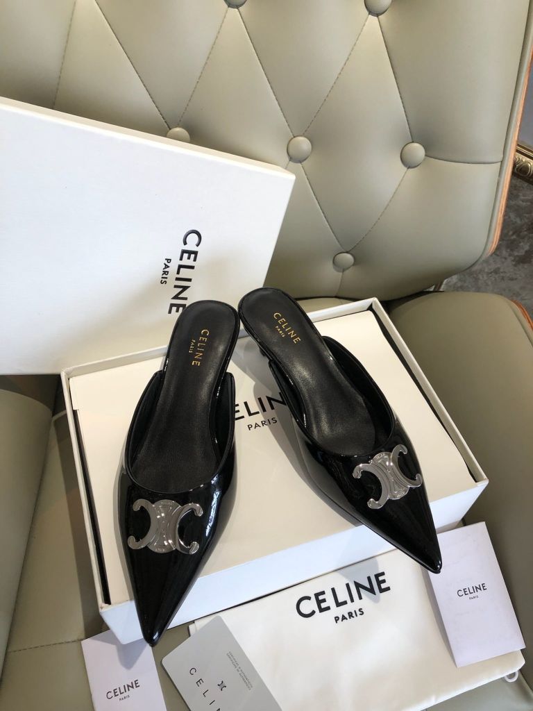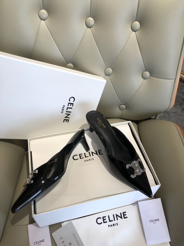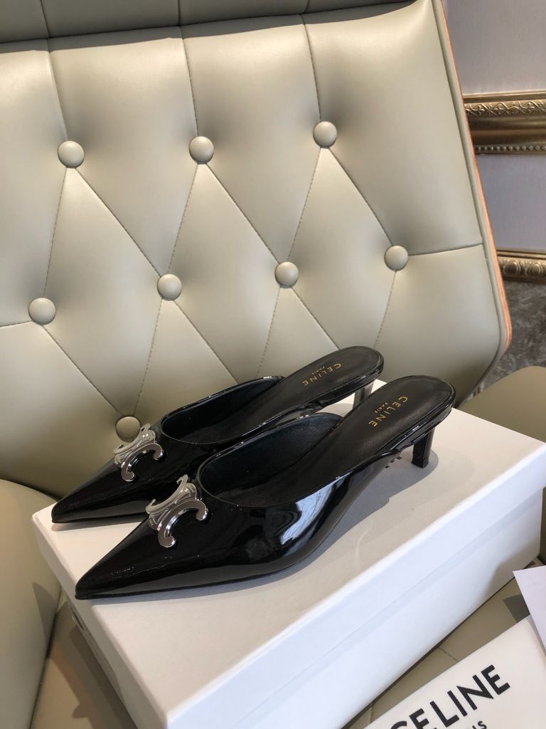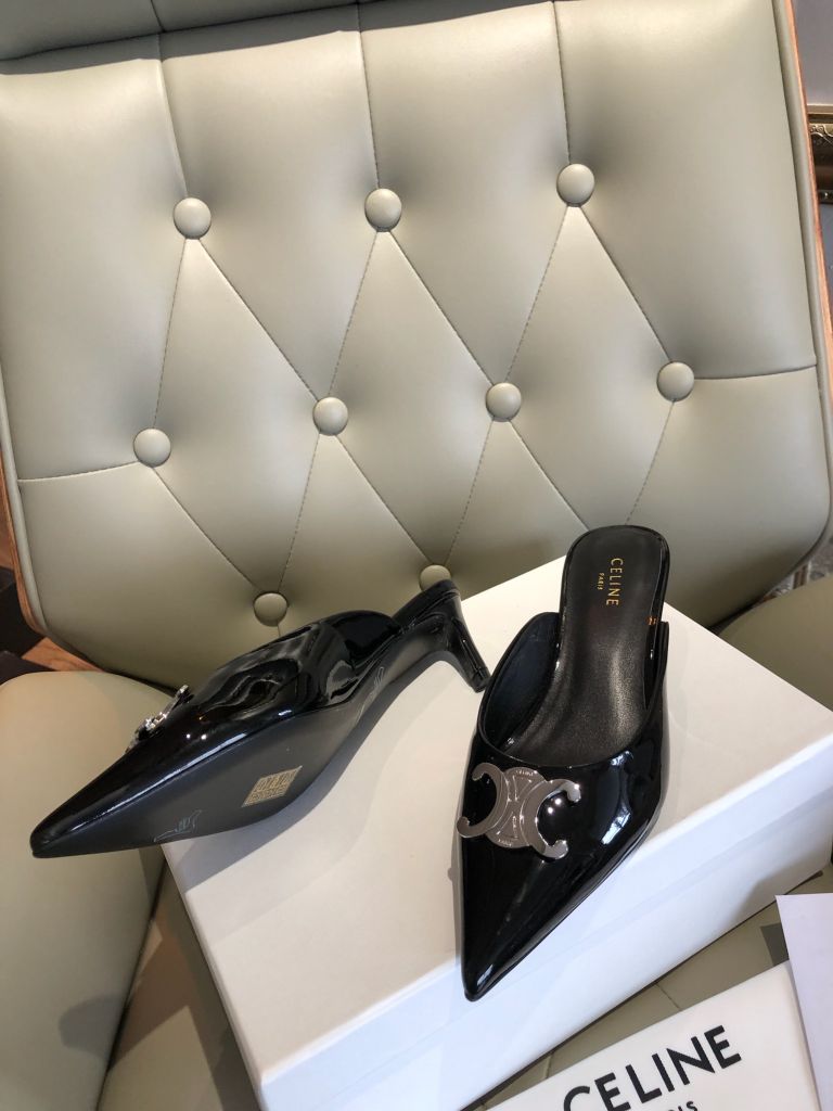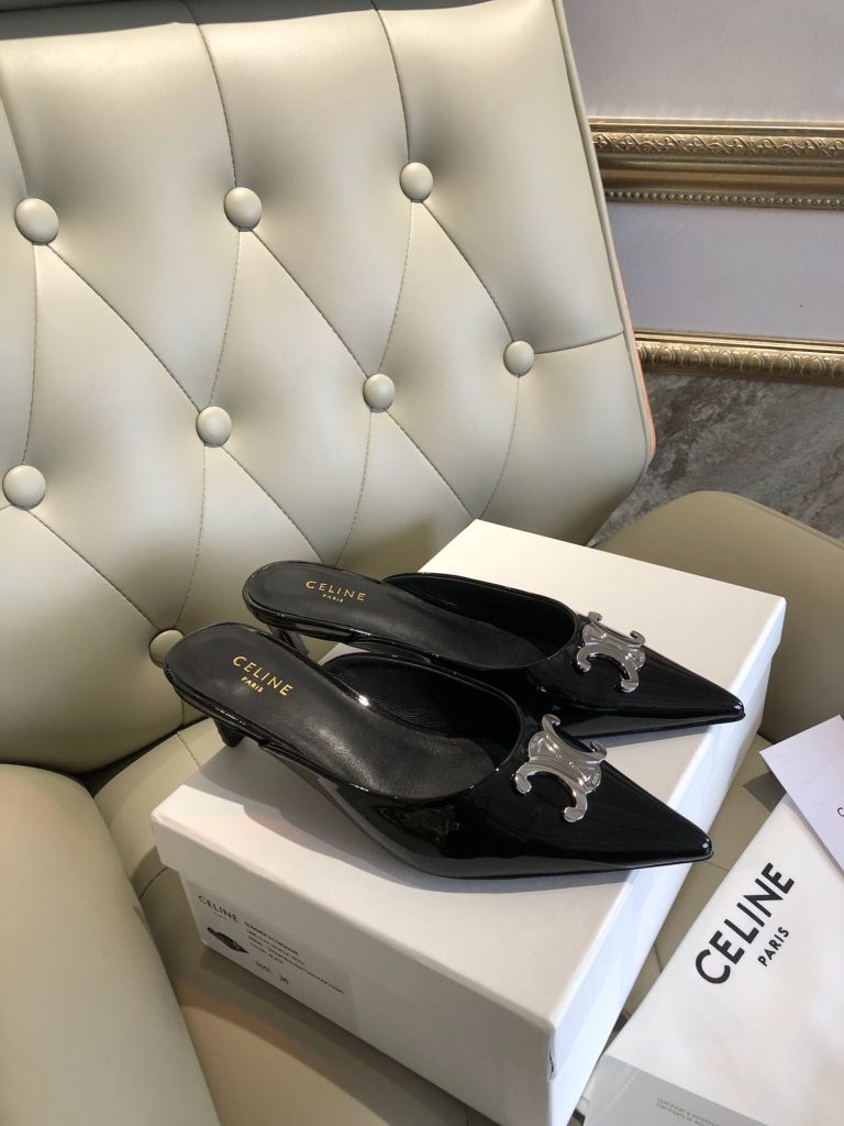 GIÀY SỤC CELIN GÓT 4,5cm MŨI NHỌN DA ĐEN CỔ ĐIỂN 1600k (HÀNG ORDER QUỐC TẾ)