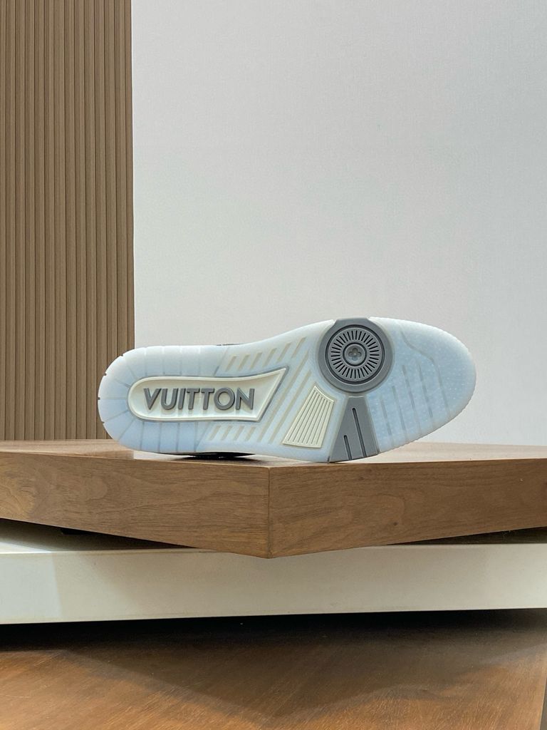 Giày thể thao dòng TRAINER được xuất xưởng. Đôi giày thể thao LV Trainer này thuộc dòng sản phẩm hợp tác của Louis Vuitton và Tyler. Họa tiết Monogram và logo thương hiệu lần lượt được chuyển thành các họa tiết trang trí nổi và bên hông bằng da bò mờ, chứng tỏ sự sáng tạo của nghệ sĩ đối với các yếu tố cổ điển.