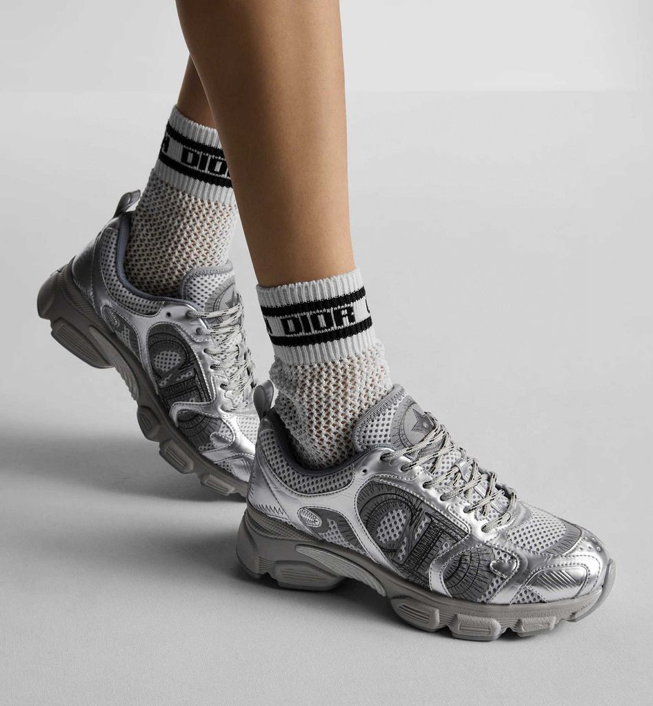 ✓ Mẫu giày mới cho bộ sưu tập Ready-to-Wear Thu 2024, giày thể thao Dior Chrono là phiên bản tái hiện giày chạy bộ theo phong cách thời trang cao cấp của Dior. Được chế tác từ lưới màu be với các tấm da ép màu vàng và bạc, đôi giày có logo CD ở hai bên, miếng dán hình ngôi sao trên lưỡi gà và logo Dior ở gót giày. Được trang bị dây giày ba màu và đế giày nhẹ có họa tiết ngôi sao, đôi giày này có thể tạo nên phong cách giản dị cho bất kỳ mùa nào.