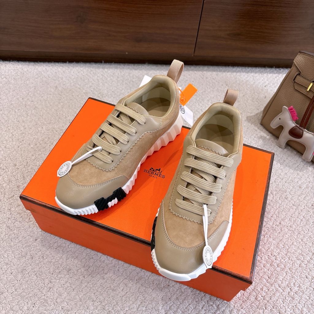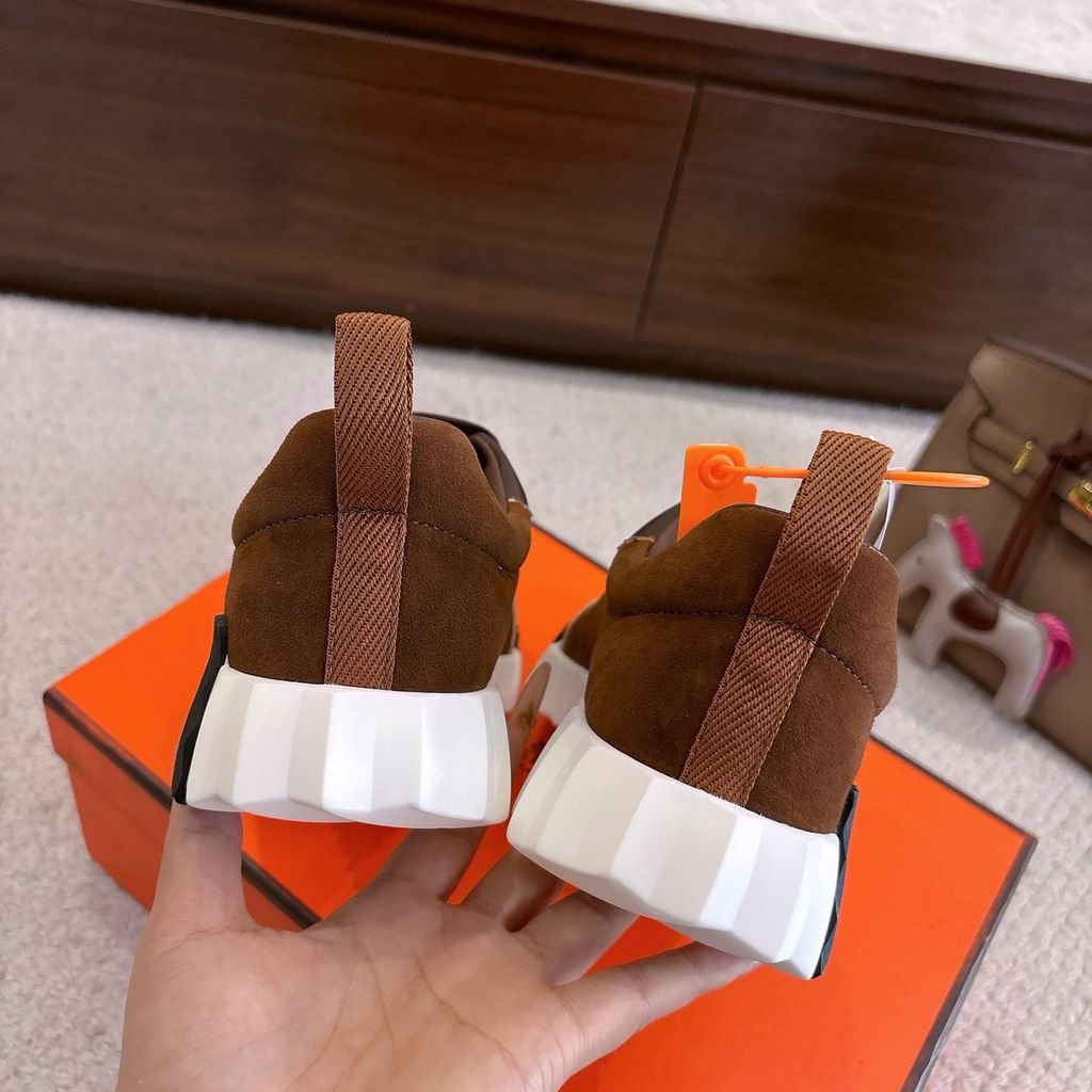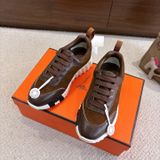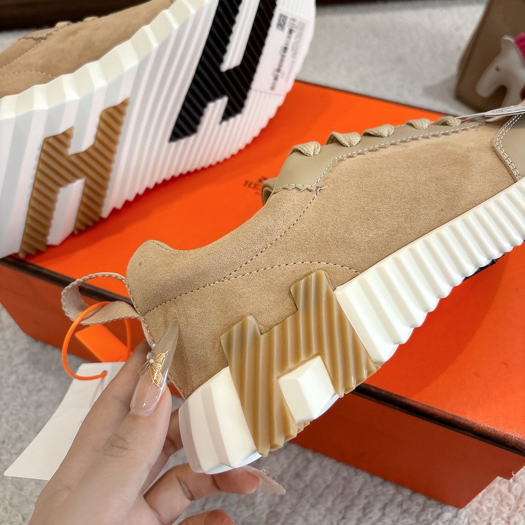 • Tông nâu ấm phối đế trắng nổi khối chữ H hai bên hông, nhìn là nhận ra ngay chất chơi “sporty luxury”.