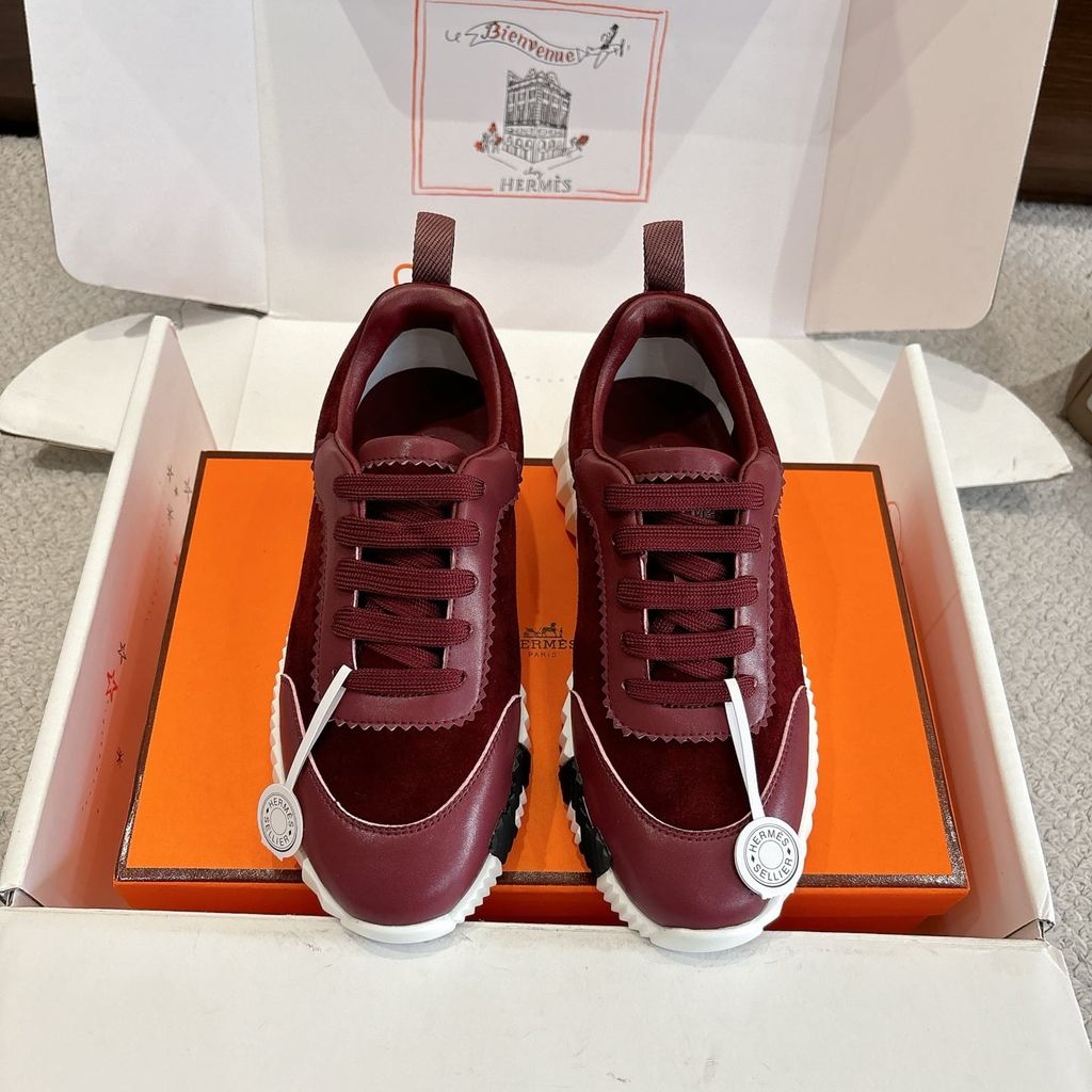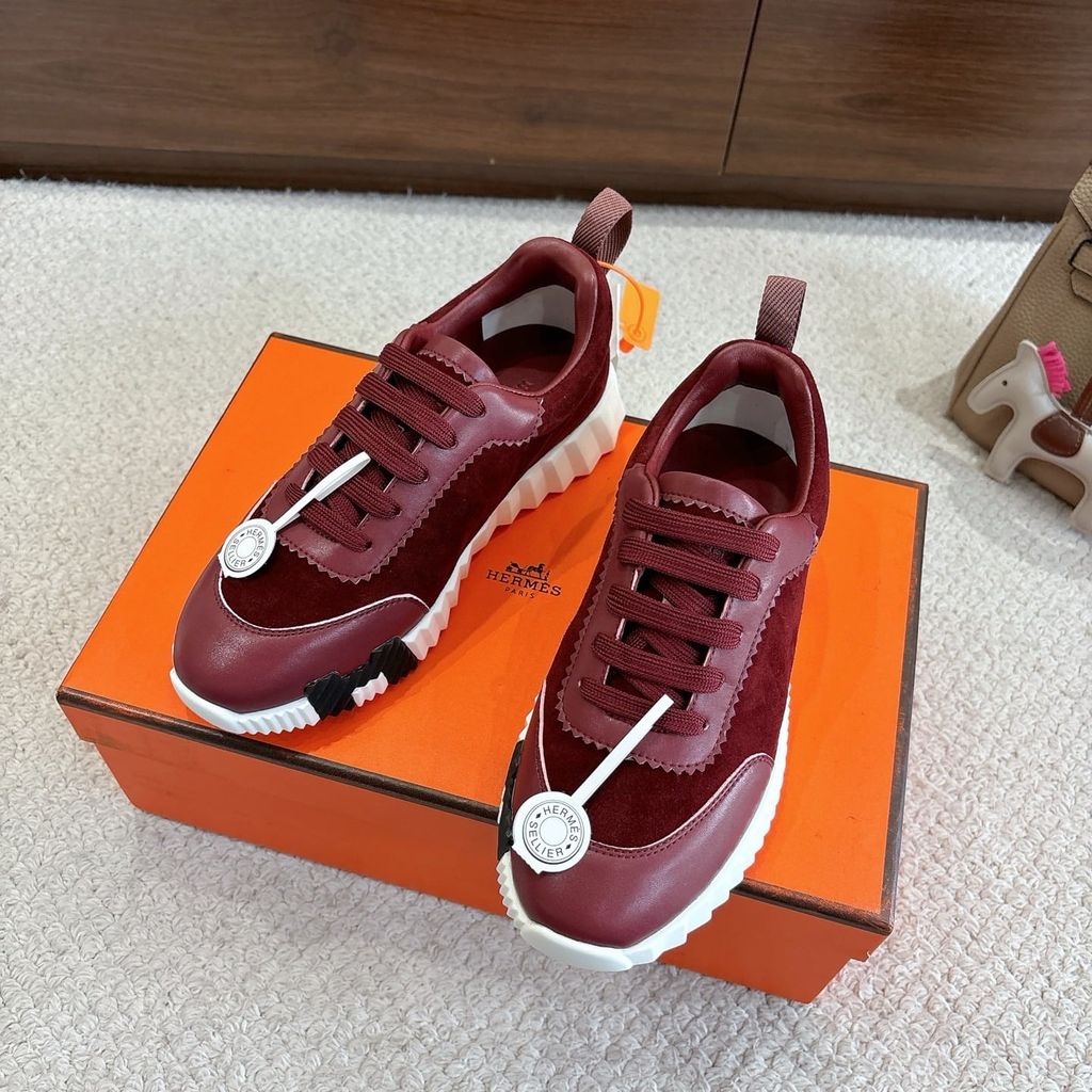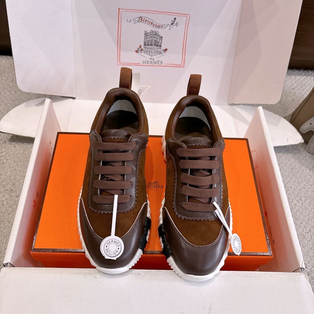 • Tông nâu ấm phối đế trắng nổi khối chữ H hai bên hông, nhìn là nhận ra ngay chất chơi “sporty luxury”.
