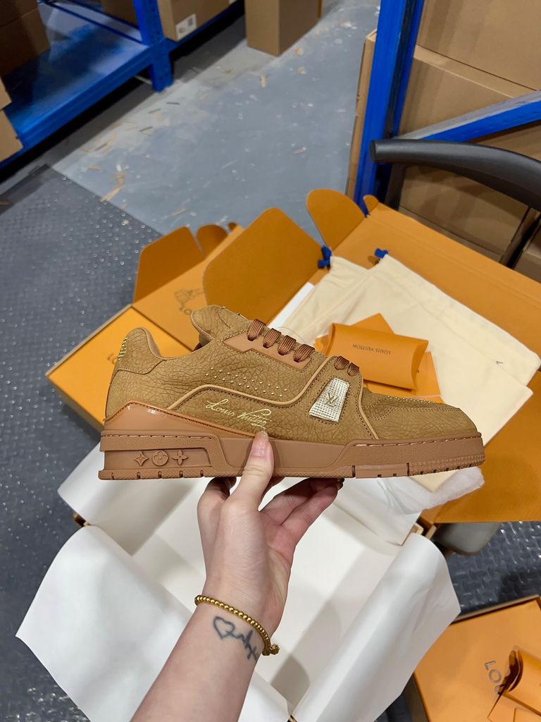 • Upper da bê hạt/da trơn phối suede hoặc canvas dệt monogram tùy phiên bản.