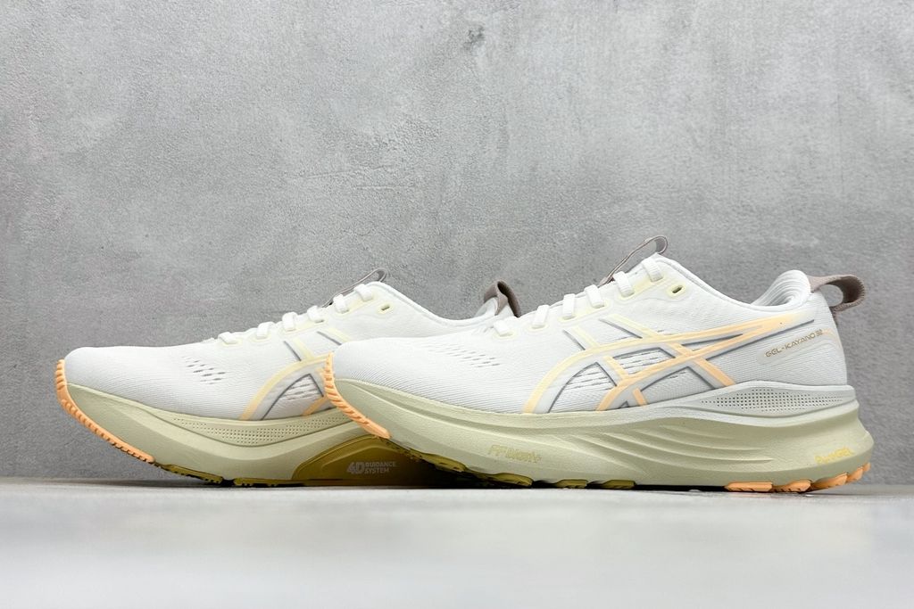 • Gót có đệm ôm chắc, tab kéo bản lớn màu vàng tạo điểm nhấn; mảng phủ tím hai bên tăng độ nâng đỡ.