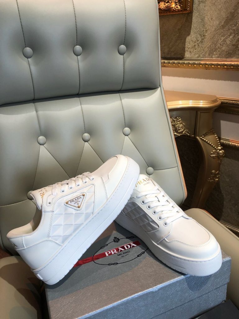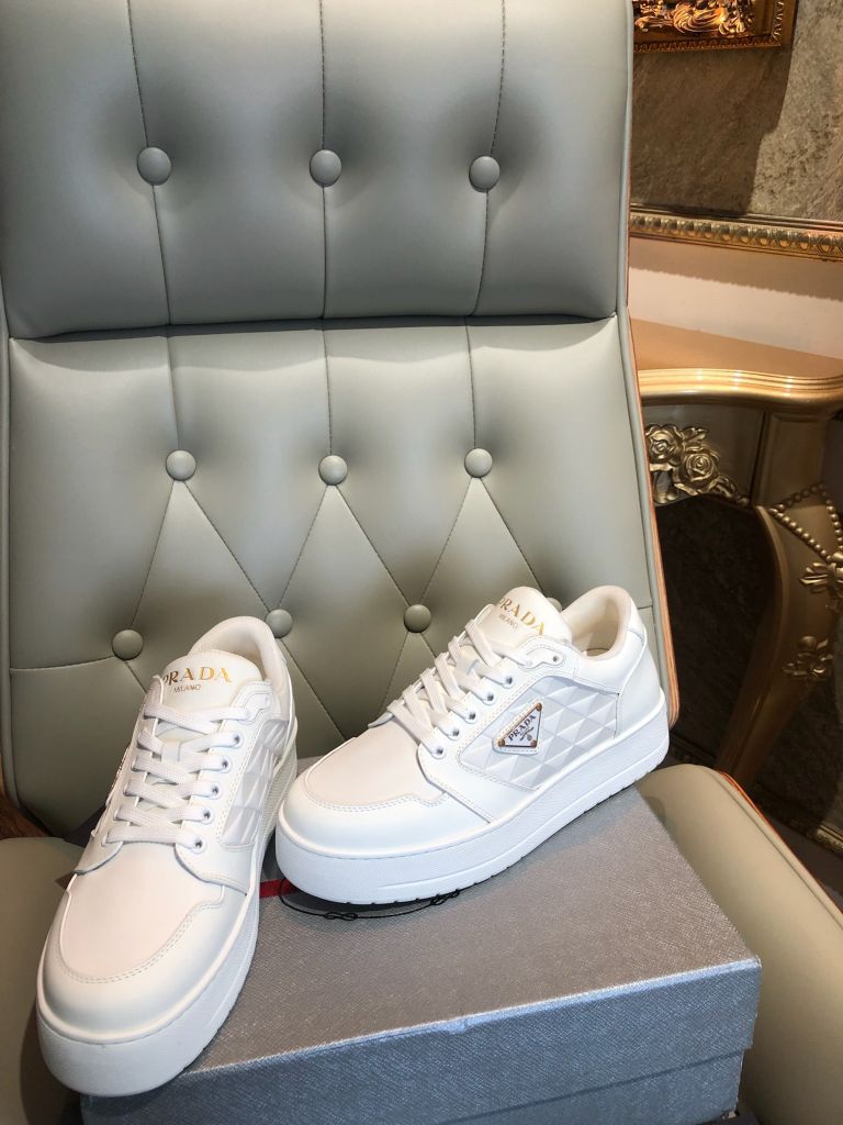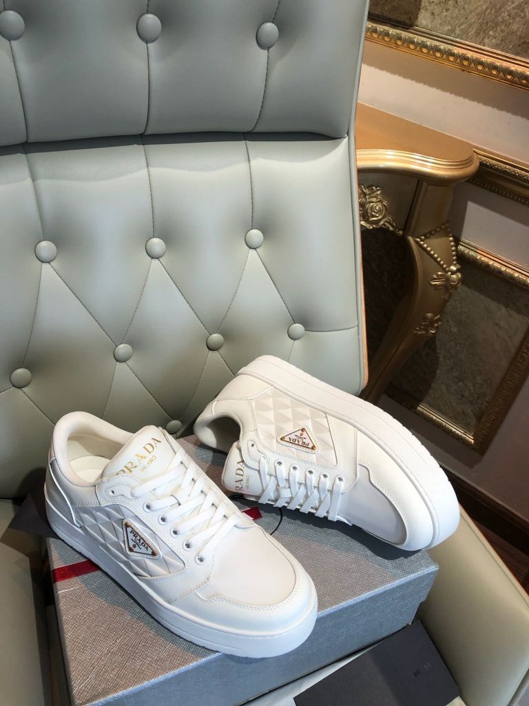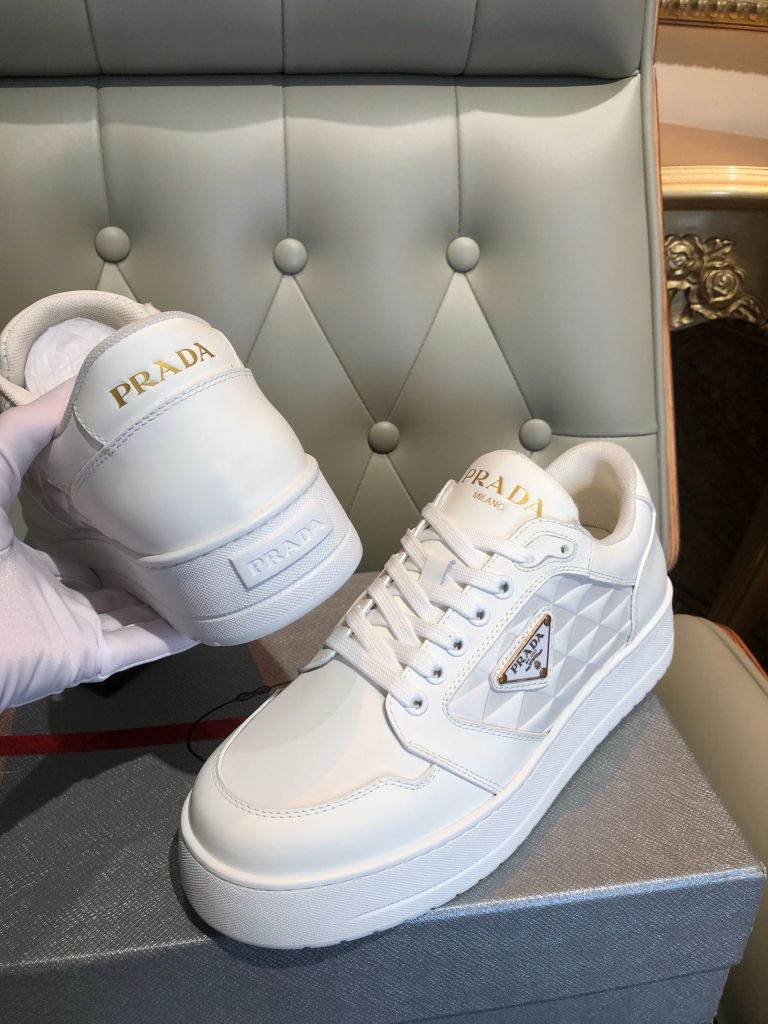 GIÀY THỂ THAO NAM PRAD* DA TRẮNG LOGO TAM GIÁC THANH LỊCH 1750k (HÀNG ORDER QUỐC TẾ)