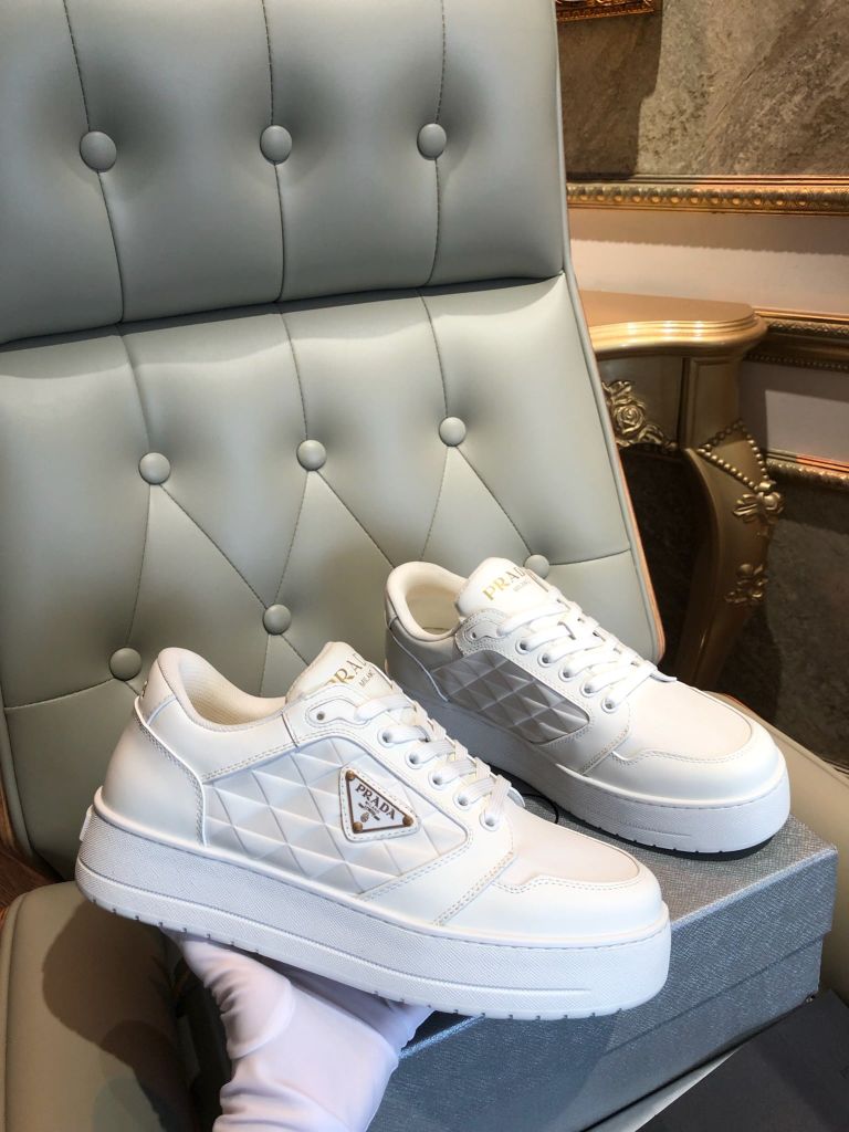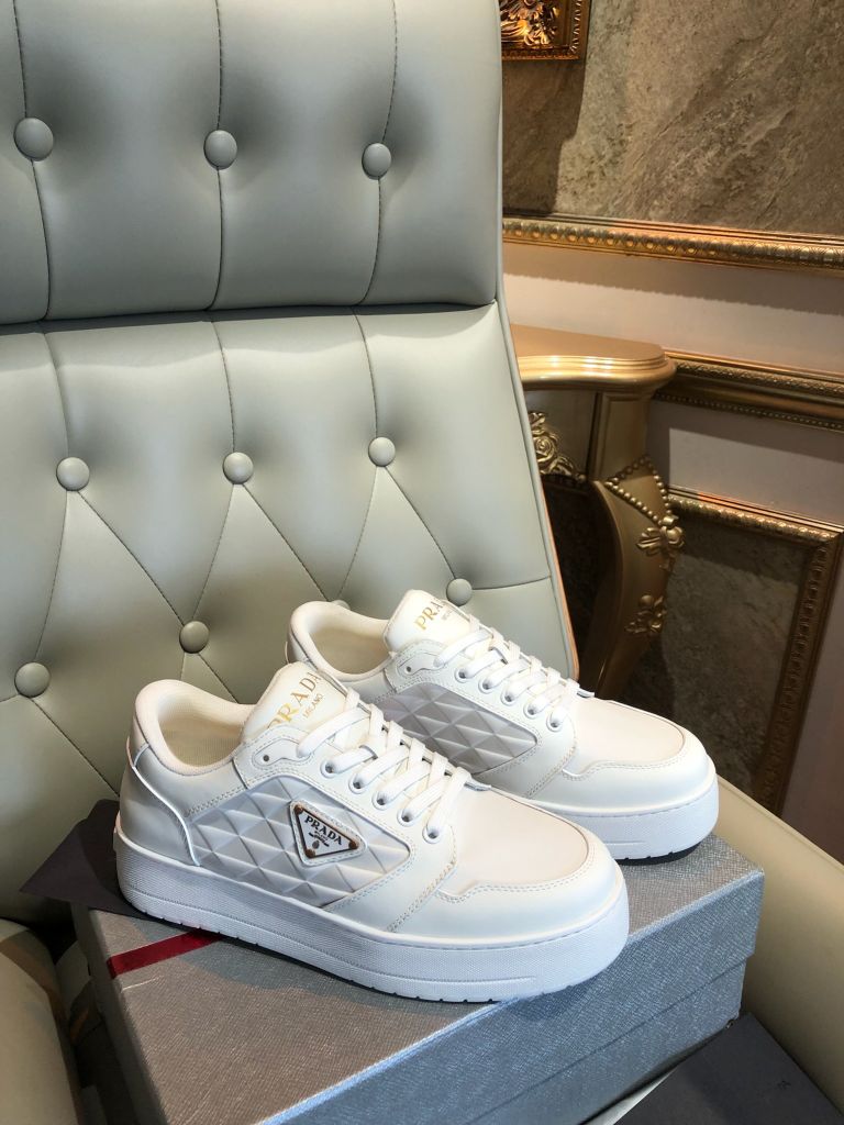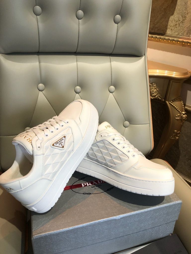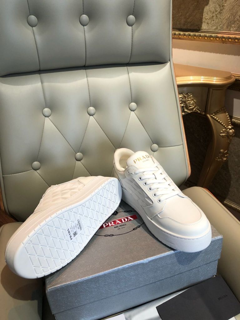 GIÀY THỂ THAO NAM PRAD* DA TRẮNG LOGO TAM GIÁC THANH LỊCH 1750k (HÀNG ORDER QUỐC TẾ)