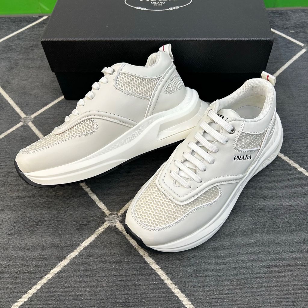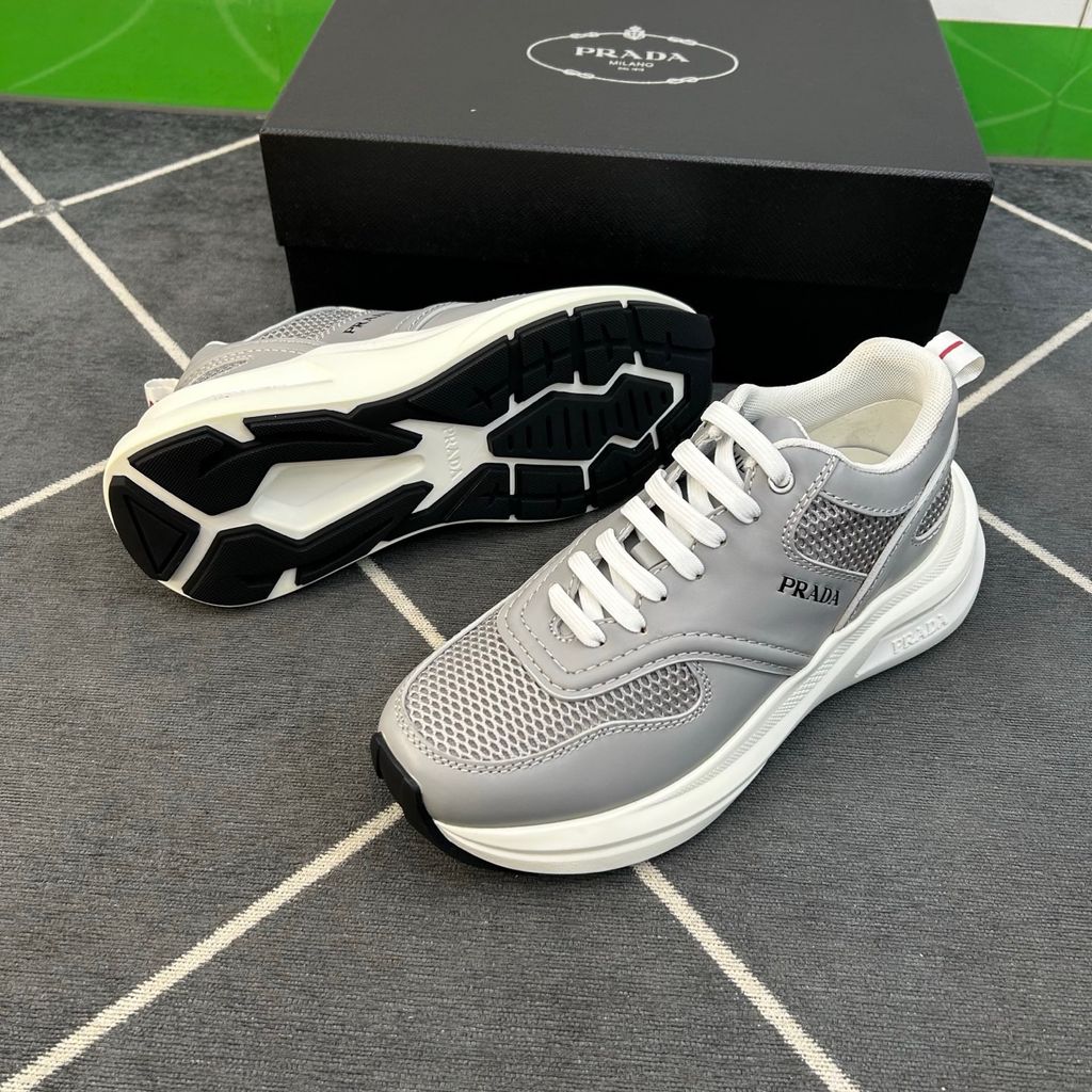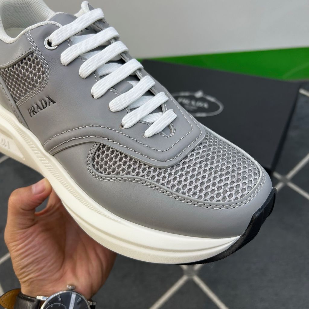 GIÀY THỂ THAO NAM PRAD* LƯỚI – DA BÊ XÁM, ĐẾ DÀY ÊM BẬT 2400k