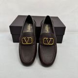 GIÀYMOCCASIN NAM VALENTINO* LOAFER DA BÊ VÂN HẠT – LOGO V MẠ VÀNG 2850k