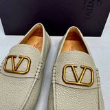 GIÀYMOCCASIN NAM VALENTINO* LOAFER DA BÊ VÂN HẠT – LOGO V MẠ VÀNG 2850k