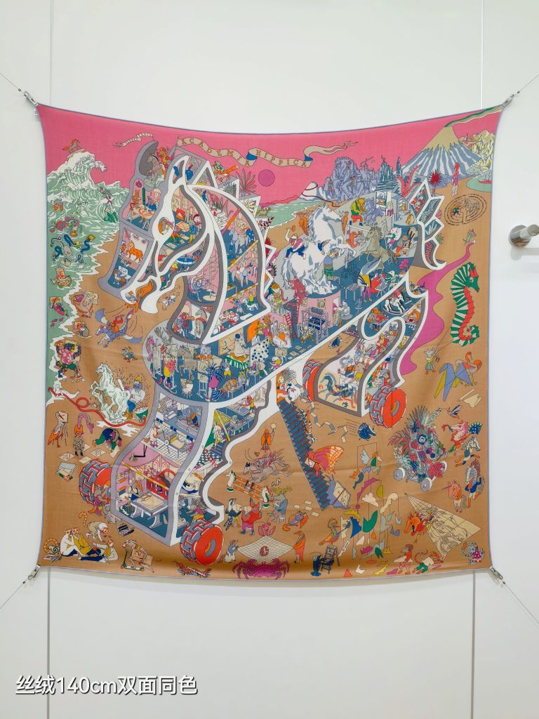 KHĂN CHOÀNG NAM NỮ HERM* LEN LỤA 140×140 HỌA TIẾT “HỌC VIỆN MÃ THUẬT” 1400k (HÀNG ORDER QUỐC TẾ)