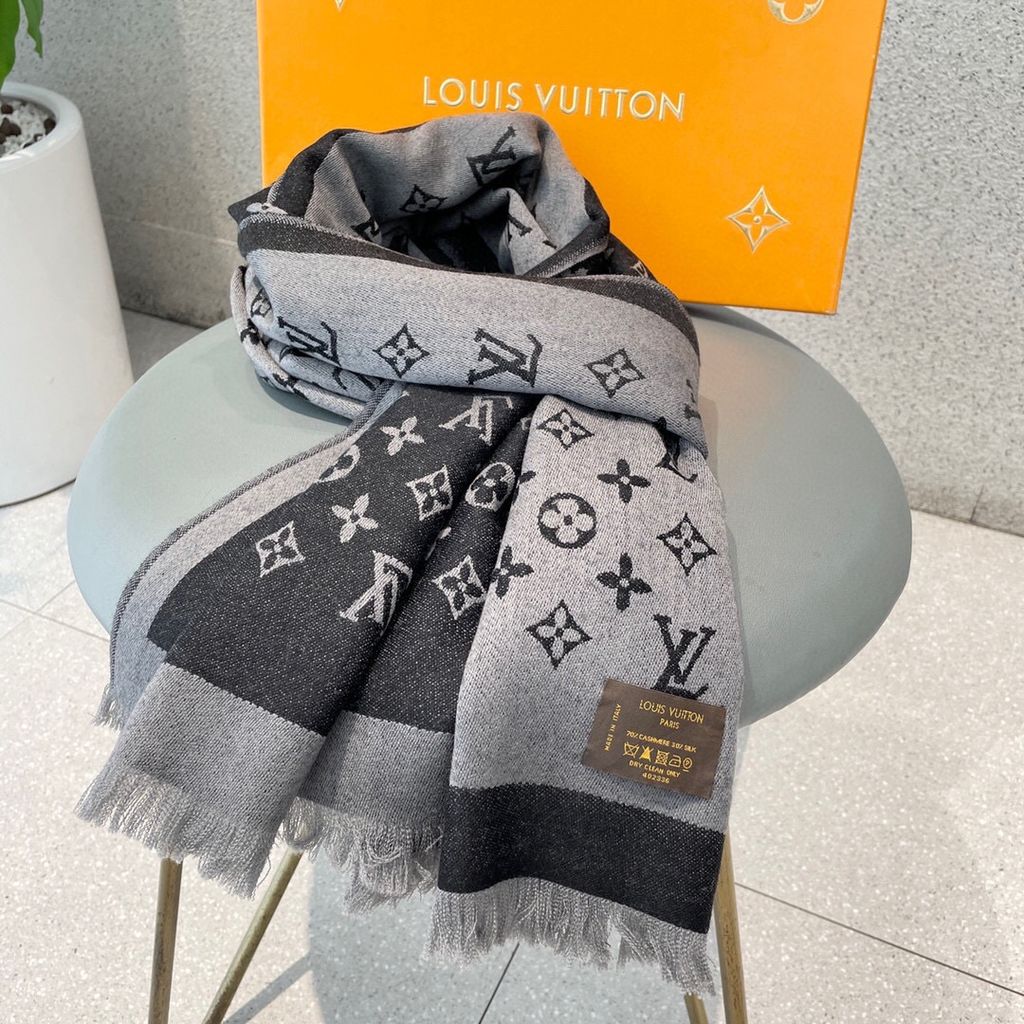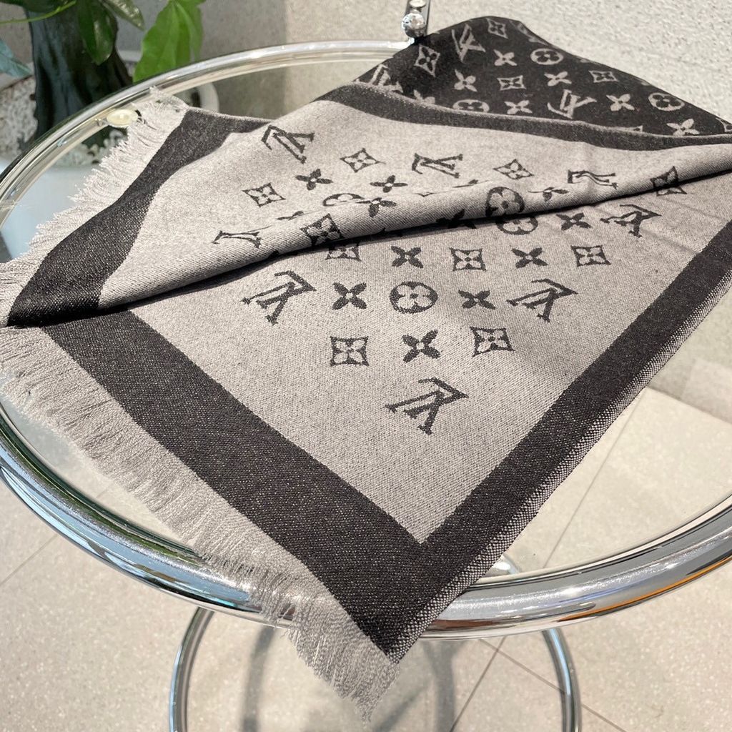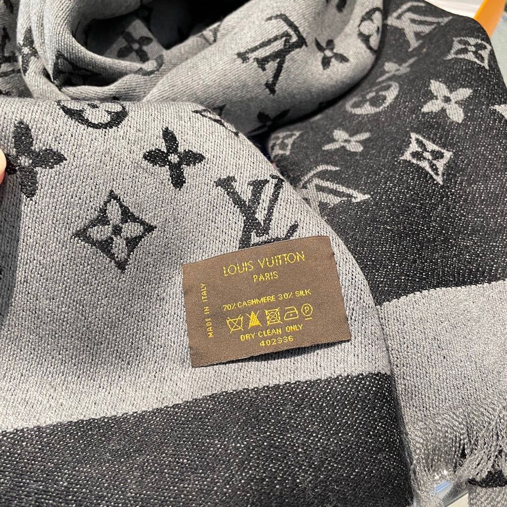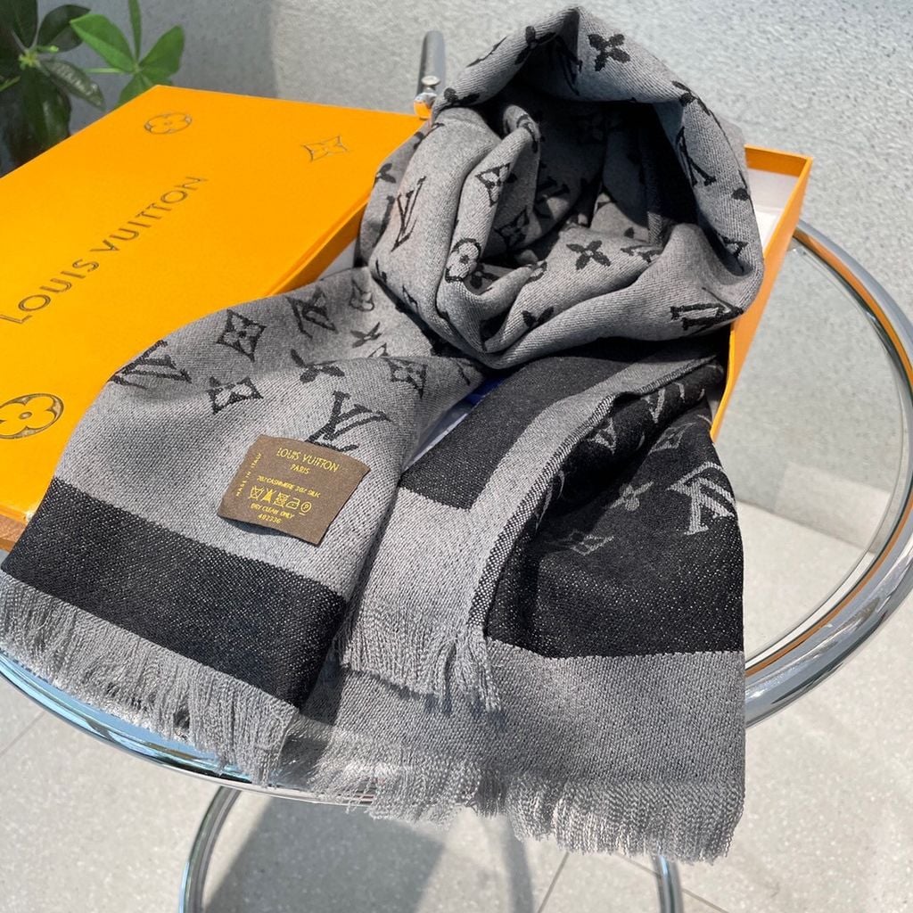 KHĂN CHOÀNG NAM NỮ LV* LEN LỤA MONOGRAM XÁM ĐEN CAO CẤP 1050k (HÀNG ORDER QUỐC TẾ)