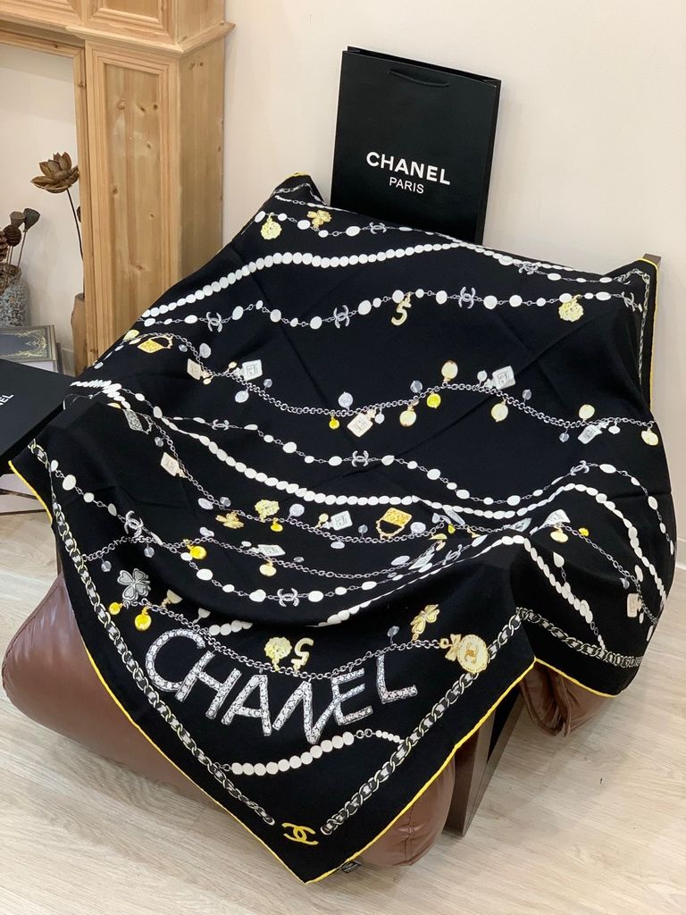 KHĂN CHOÀNG NỮ CHANEL* “PEARL SHINE” FW25 – LỤA CASHMERE, VIỀN CUỘN TAY 1350k (HÀNG ORDER QUỐC TẾ)