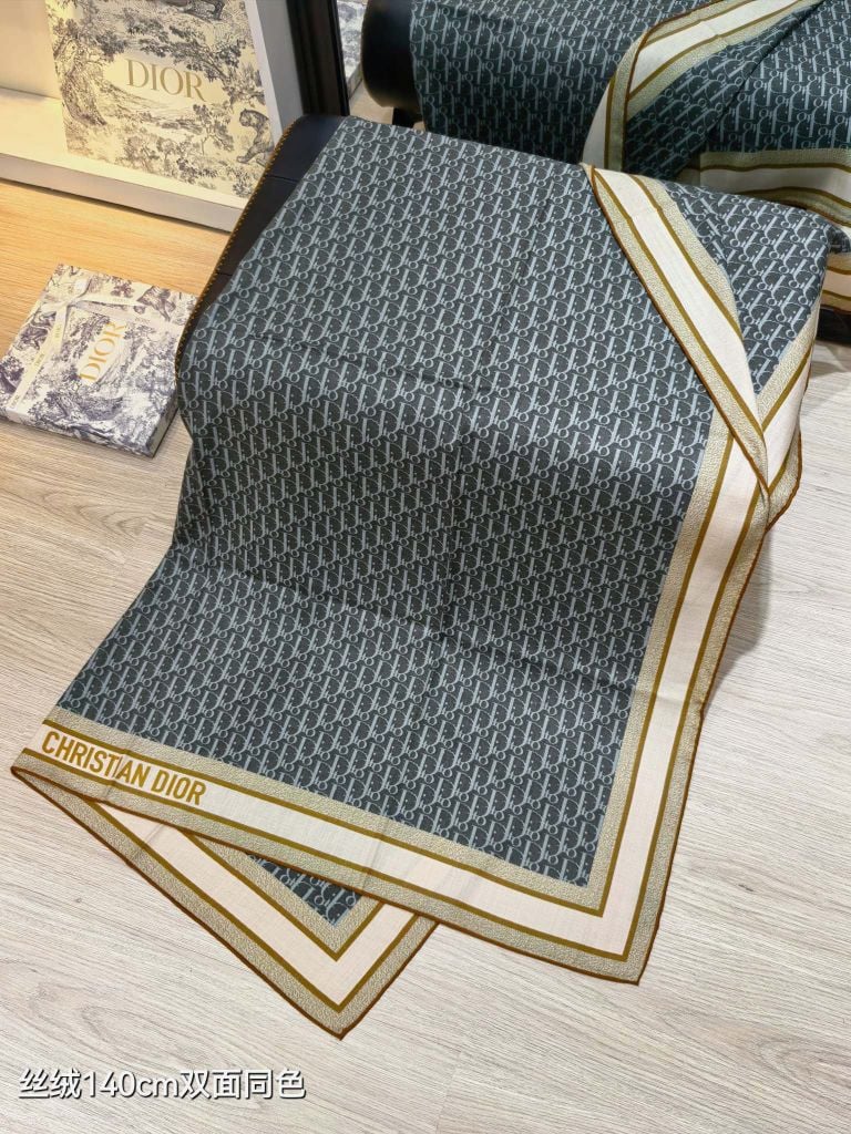 KHĂN CHOÀNG UNISEX Di** OBIQUE 140×140 – LEN LỤA 70/30, HAI MẶT THANH LỊCH 1400k (HÀNG ORDER QUỐC TẾ)