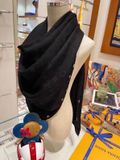 • Khăn choàng dạng vuông bản lớn, nền đen dệt monogram tone-on-tone sang trọng, độ rủ đẹp khi quàng.
