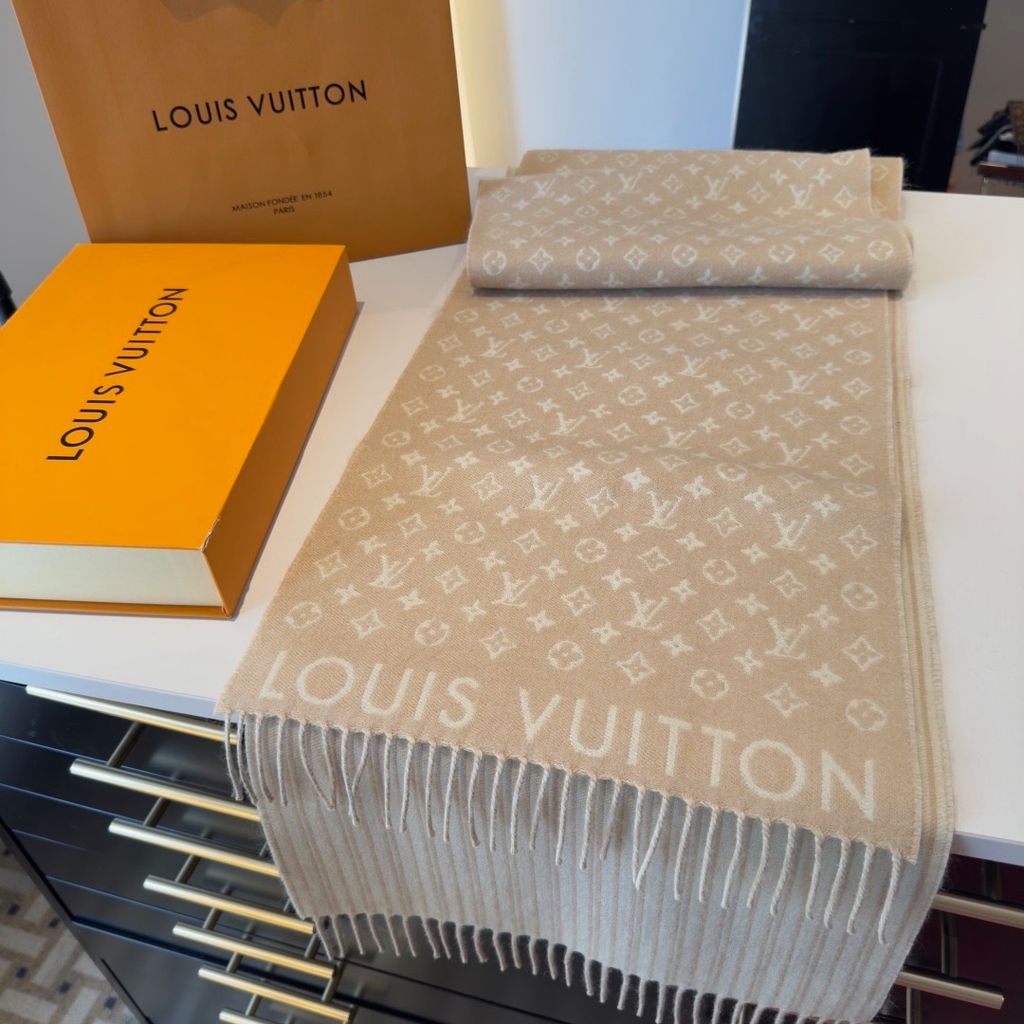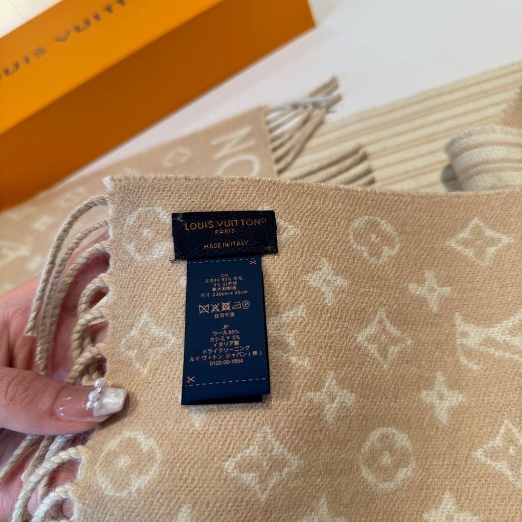 • Họa tiết Monogram Neverfull dệt nổi chạy dọc thân khăn, tạo hiệu ứng nổi khối rất “đắt giá”.