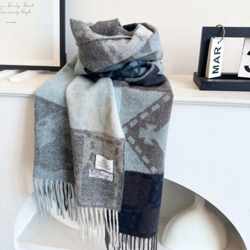 • Logo biểu tượng Vivienne Westwood dệt nổi trên nền khăn, nhìn là nhận ra ngay chất fashion Anh Quốc.