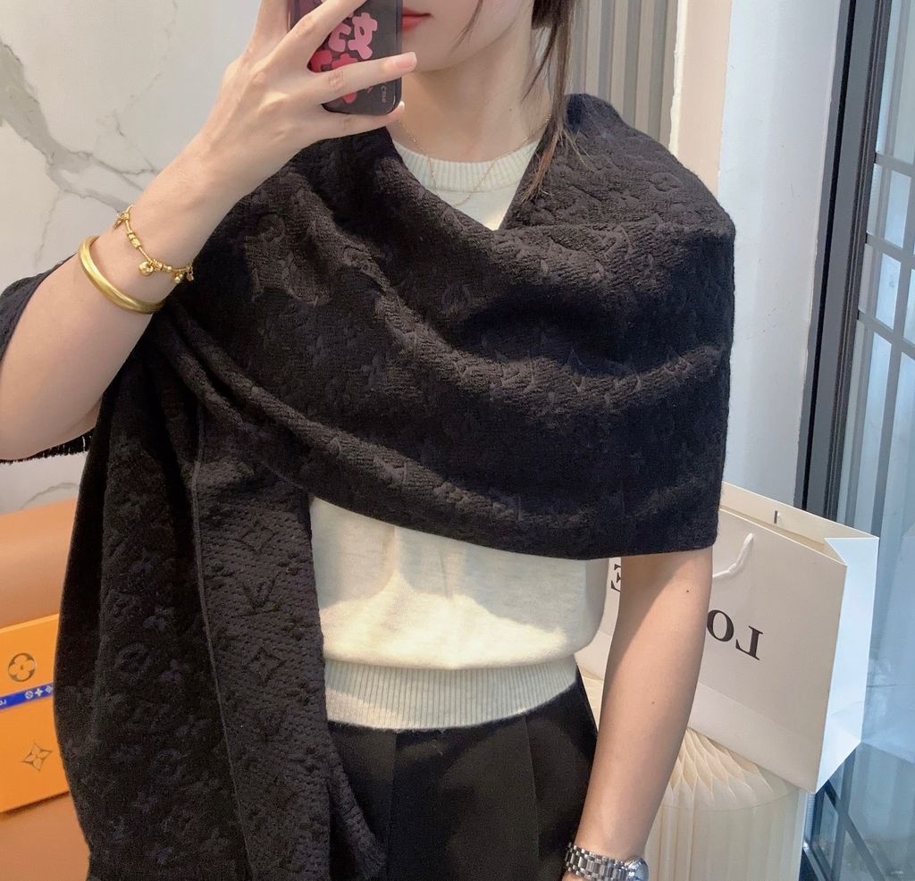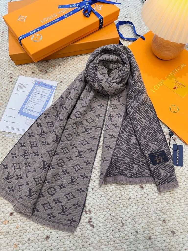 KHĂN QUÀNG NAM NỮ L V DỆT JACQUARD MONOGRAM THÊU GÓC – MỀM MỊN ẤM ÁP 1000k (HÀNG ORDER QUỐC TẾ)