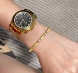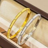• Họa tiết khắc dập nhẹ kết hợp hạt đá nhỏ chạy dọc thân lắc, lấp lánh khi nghiêng tay dưới ánh sáng.
