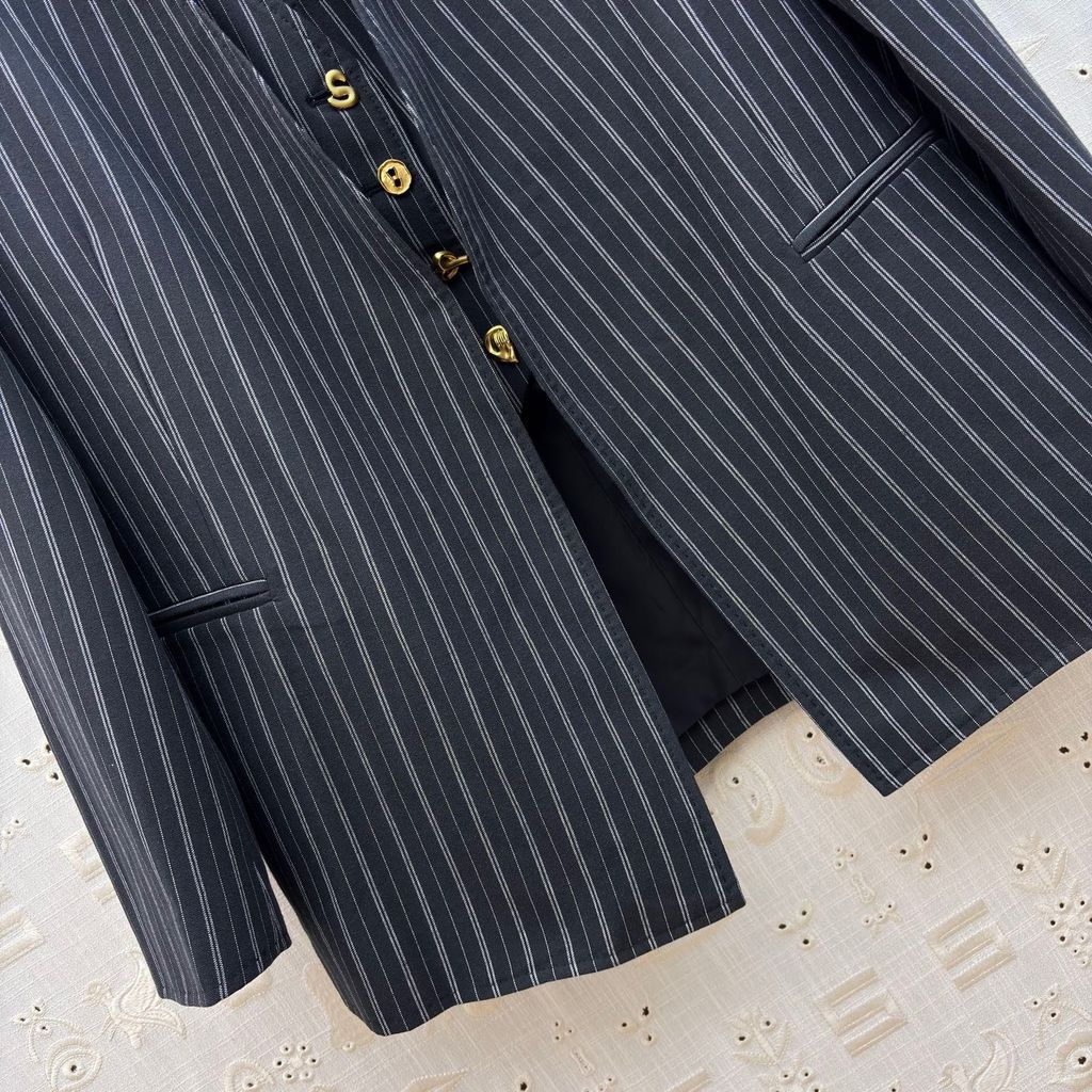 ÁO BLAZER NỮ SCHI* KẺ SỌC DÁNG SUÔNG NÚT LỆCH 1750k (HÀNG ORDER QUỐC TẾ)