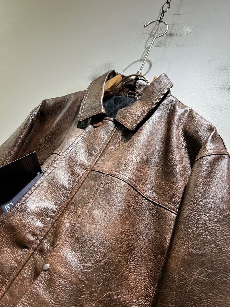 Một thiết kế áo khoác da đúng tinh thần nam tính hiện đại: nhìn là thấy độ “đắt” ở bề mặt da, phom lên vai gọn gàng, tổng thể tối giản nhưng sang rõ rệt.