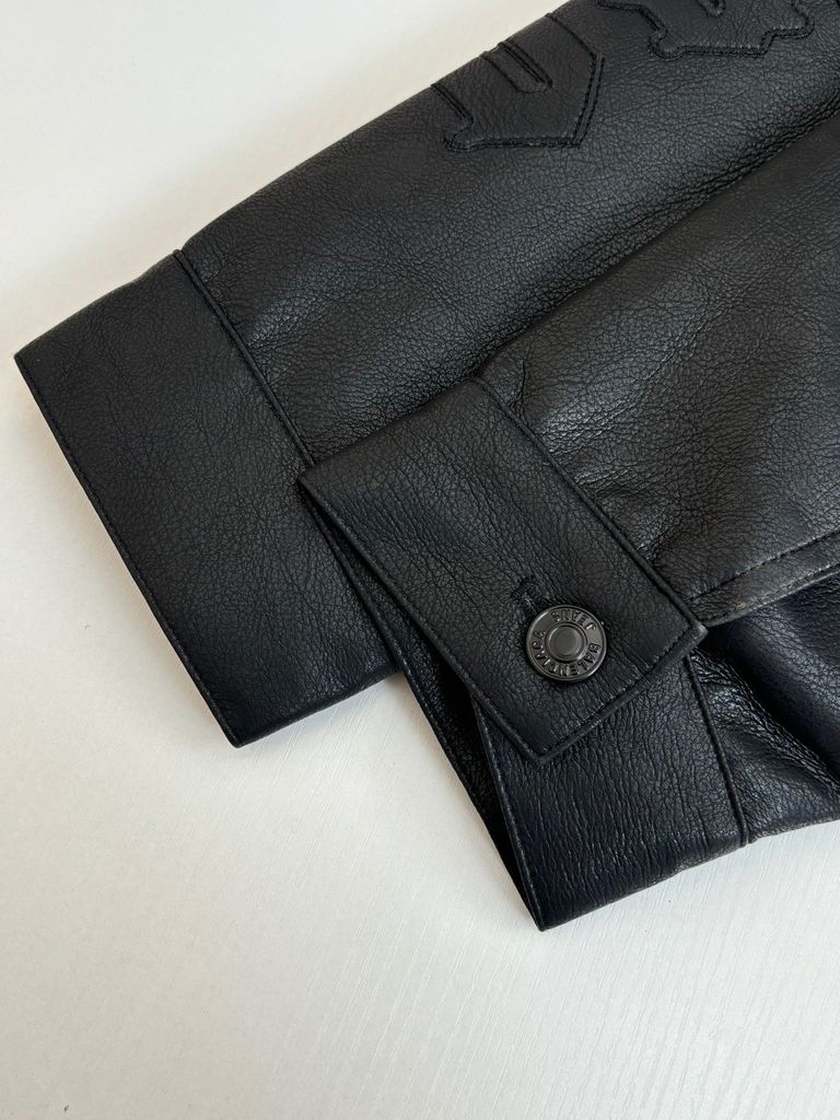 ÁO KHOÁC DA NAM BLCG DÁNG CỔ BẺ – THÊU NỔI TAY ÁO, FORM OVERSHIRT SANG LÌ 1750k (HÀNG ORDER QUỐC TẾ)