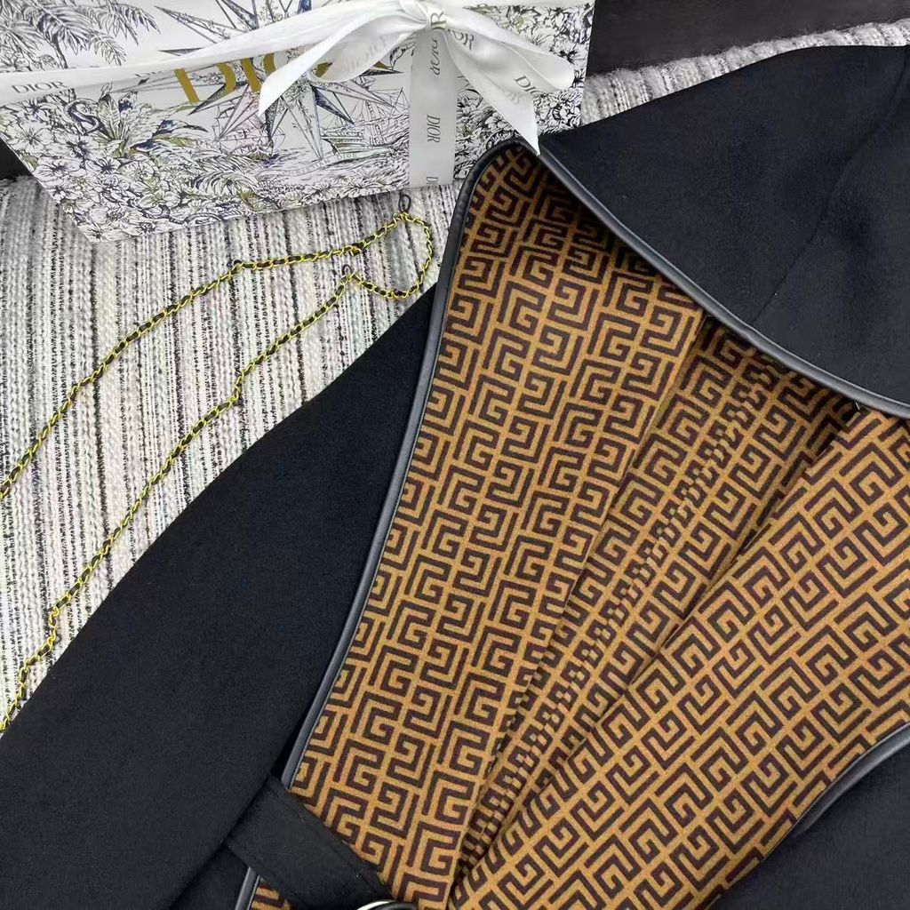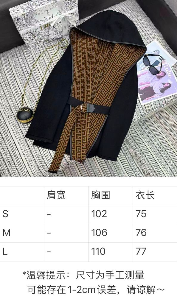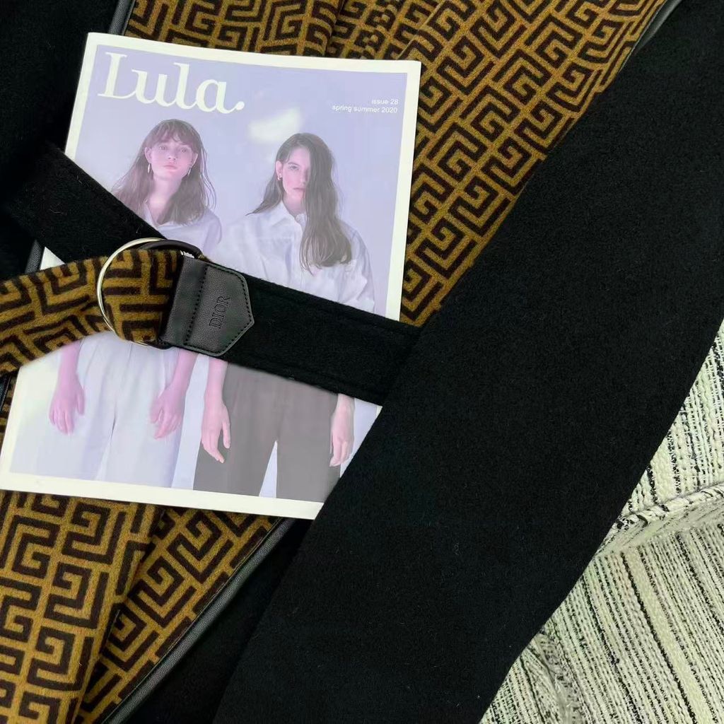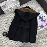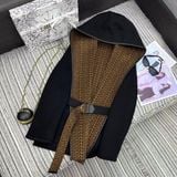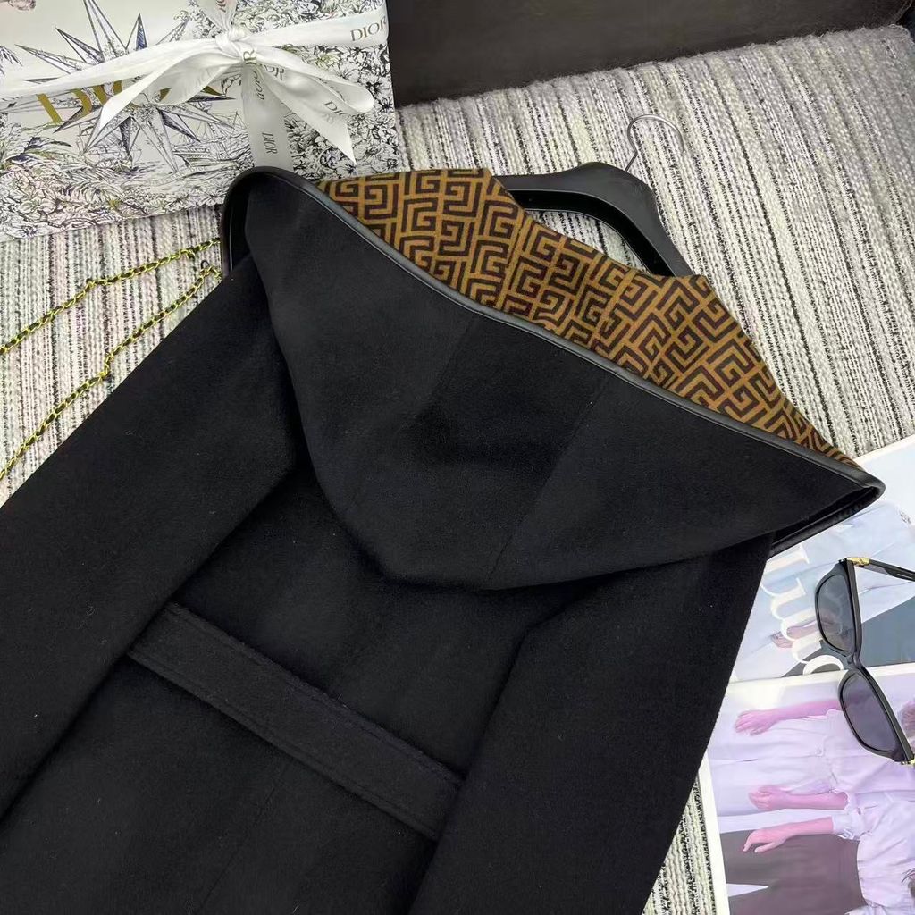 ÁO KHOÁC DÁNG DÀI NỮ DIO* MŨ TRÙM HAI MẶT LEN LÔNG CỪU DỆT LOGO THẮT ĐAI EO 3950K (HÀNG ORDER QUỐC TẾ)