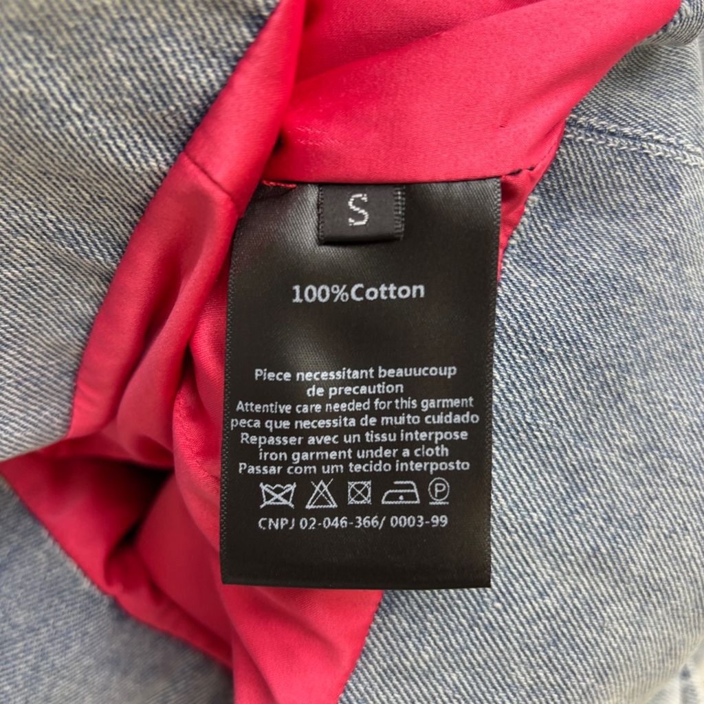• Phom vest denim chuẩn, dáng vừa ôm nhẹ, tạo hiệu ứng vai thon – eo gọn khi mặc.