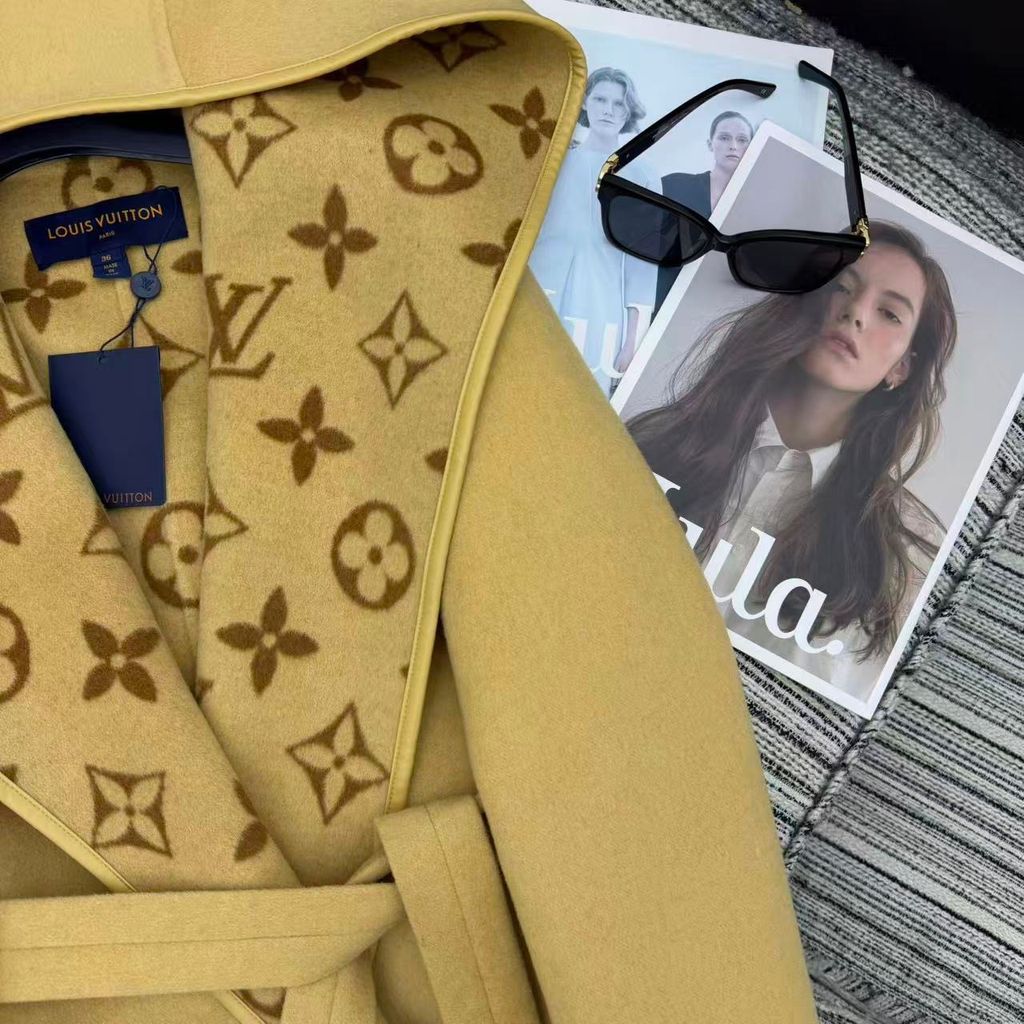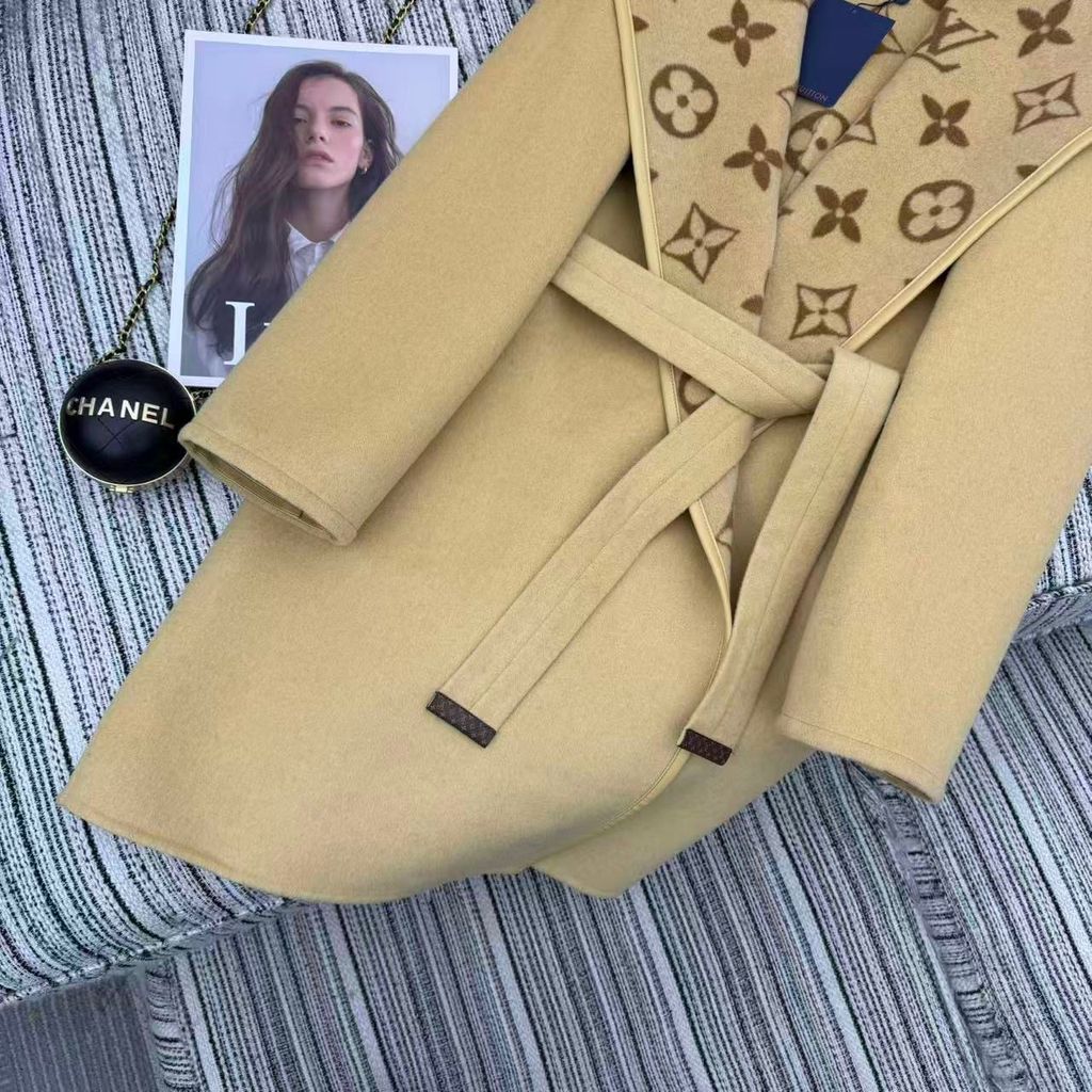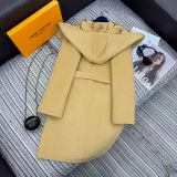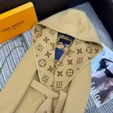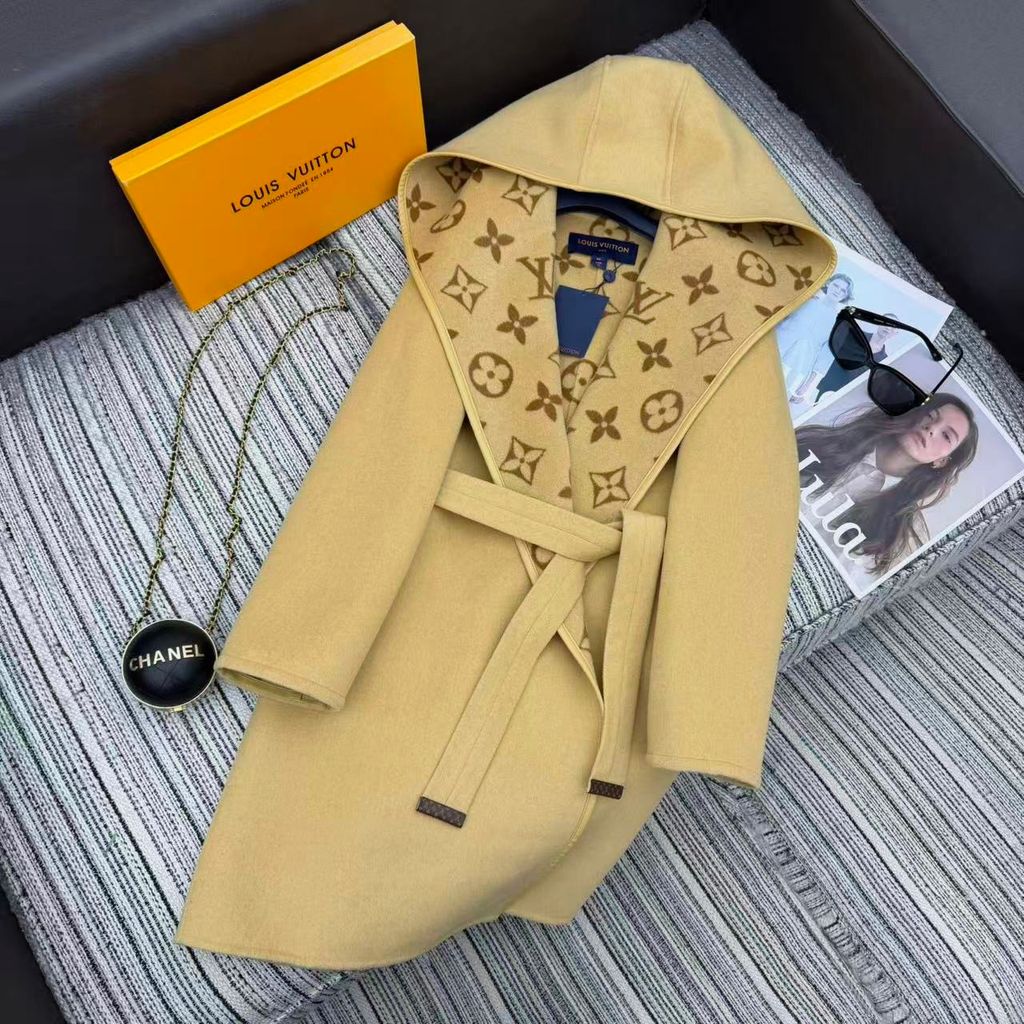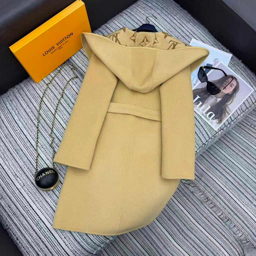 ÁO KHOÁC DẠ NỮ LOU* DÁNG DÀI CÓ MŨ HỌA TIẾT MONOGRAM ĐAI EO 5000K (HÀNG ORDER QUỐC TẾ)