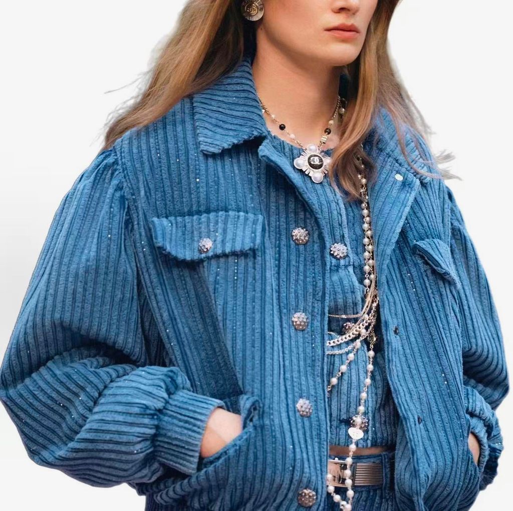 • Jacket nhung tăm gân ánh nhẹ, diện lên rất sang và trẻ trung, hợp khách thích phong cách mùa lạnh kiểu high-end châu Âu.