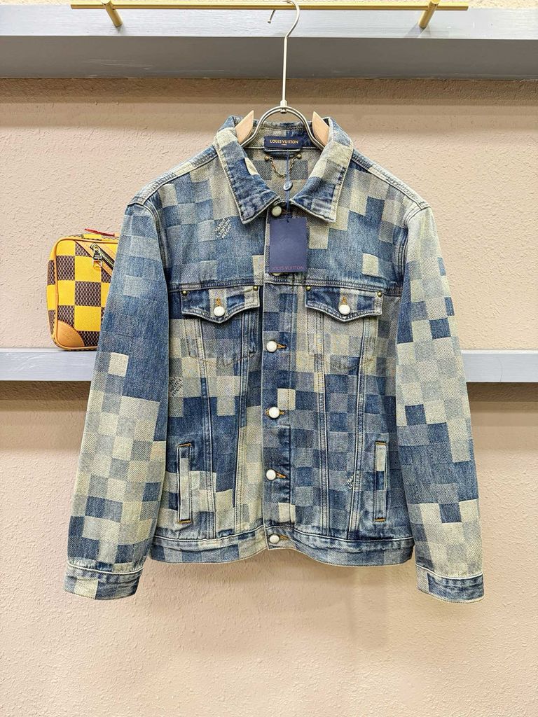 Áo khoác jeans nam L*V hoạ tiết caro mẫu mới cao cấp 1950k
