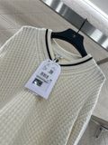 • Viền cổ và tay phối đường nét tương phản chuẩn chỉnh; phần sau cổ điểm logo Double C thêu nổi như một “signature” kín đáo.