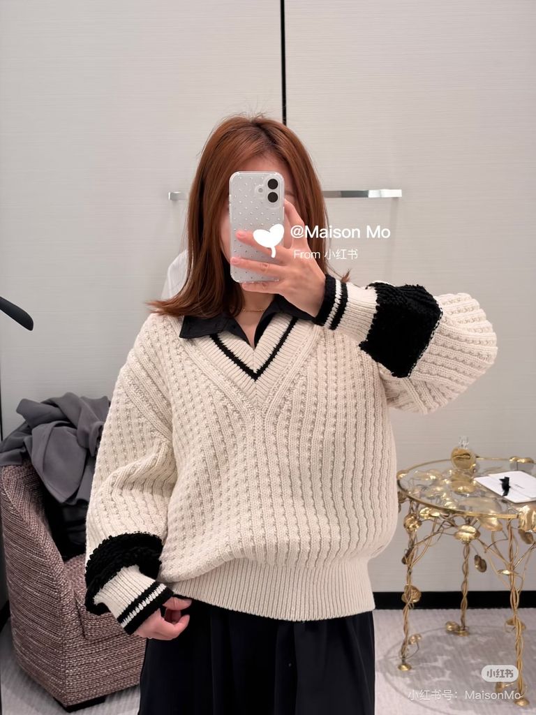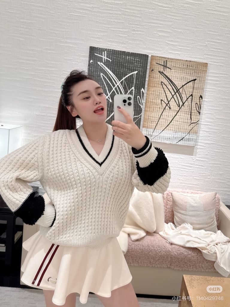 Một thiết kế knitwear tối giản kiểu Pháp: gọn gàng, sang và tạo điểm nhấn vừa đủ để lên outfit “đắt” ngay từ cái nhìn đầu tiên.