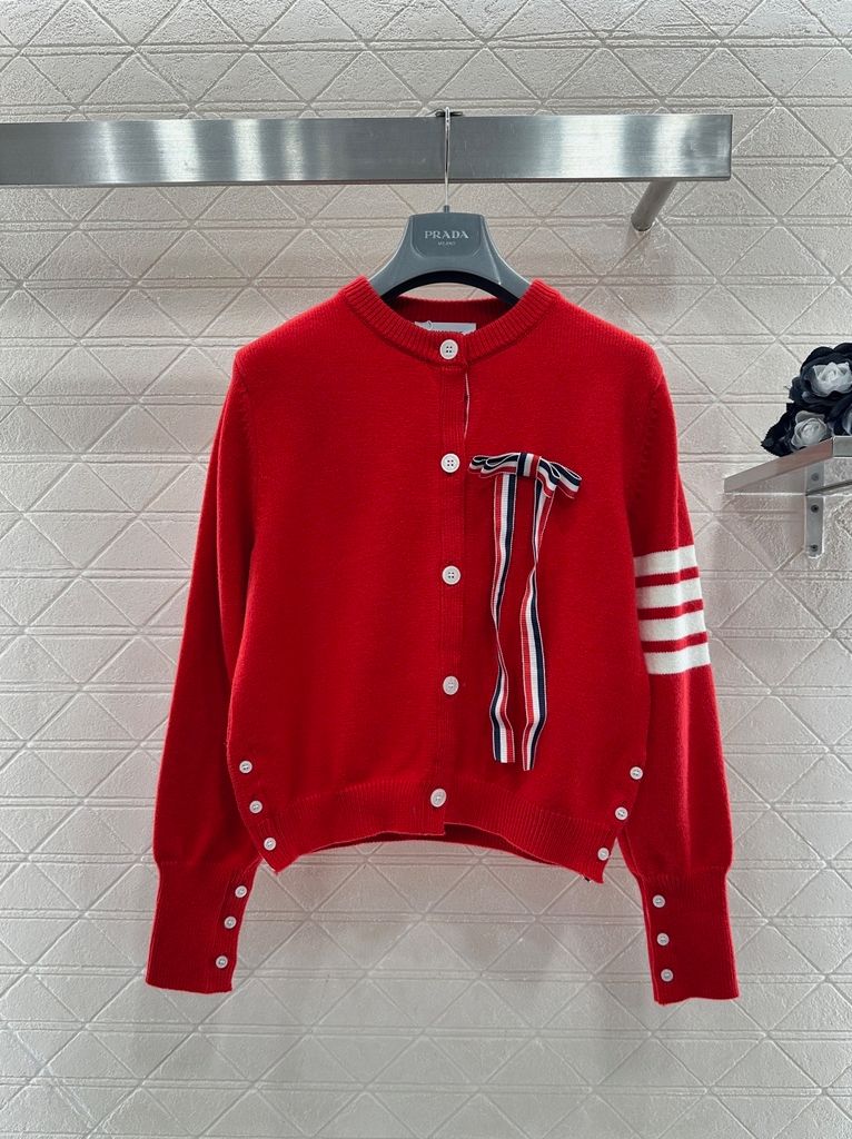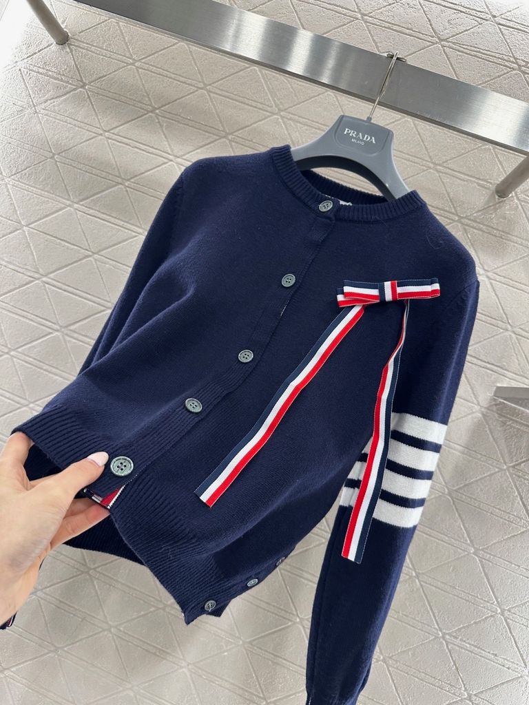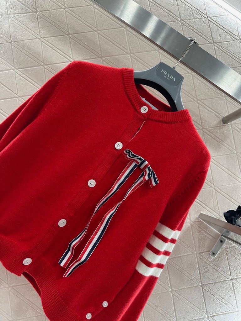 Một chiếc cardigan “chuẩn chỉnh – có gu” ngay từ ánh nhìn đầu tiên: phom gọn gàng, điểm nhấn ruy băng nơ đặc trưng tạo hiệu ứng thanh lịch và nổi bật vừa đủ.