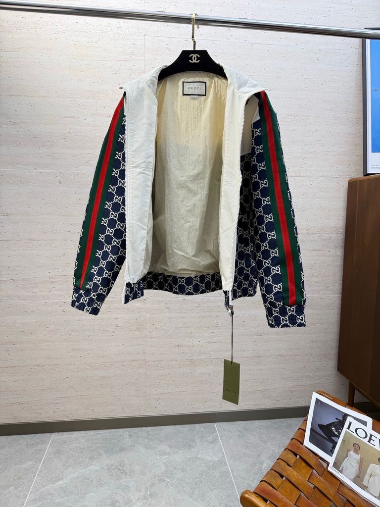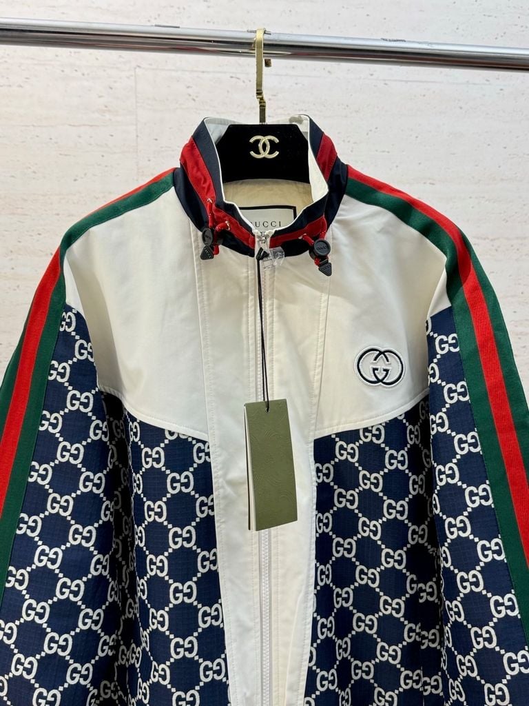 ÁO KHOÁC NAM GC CỔ BẺ DỰNG NHẸ – HOẠ TIẾT MONOGRAM PHỐI MẢNG, VIỀN SỌC THỂ THAO SANG, FORM GỌN DỄ PHỐI 1900k (HÀNG ORDER QUỐC TẾ)