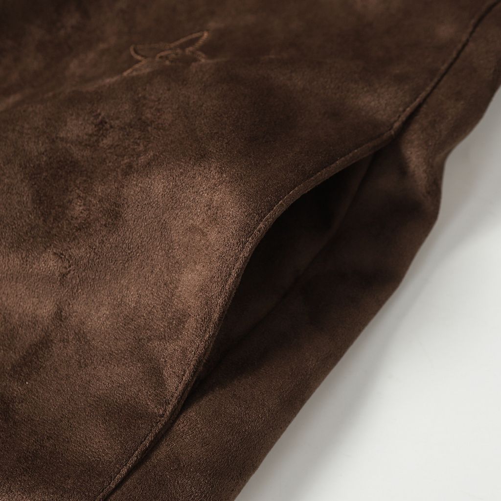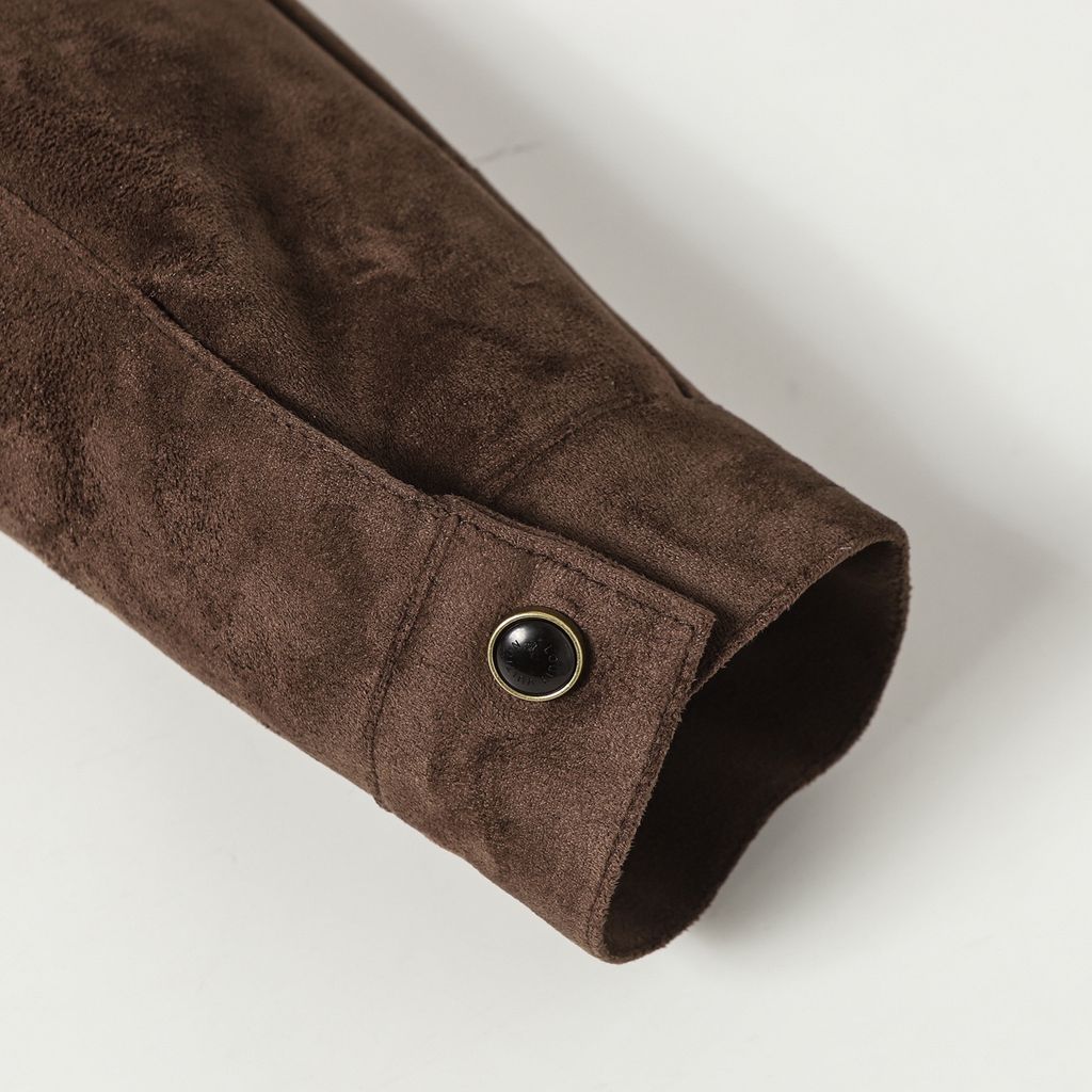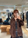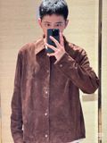 Chỉ cần khoác lên là tổng thể “lên mood” ngay: dáng sơ mi gọn gàng, bề mặt da lộn sang trầm và họa tiết dập nổi tinh tế tạo chiều sâu cực cuốn.