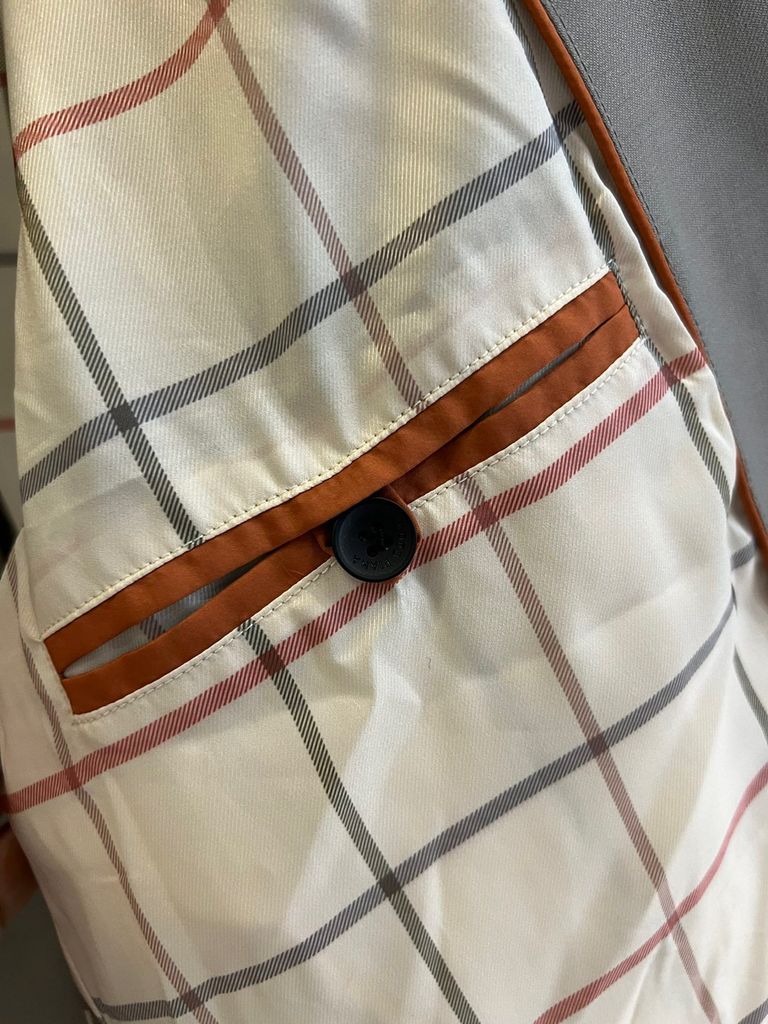 • Lót caro tinh tế phối viền nâu nổi bật, chi tiết hoàn thiện tỉ mỉ