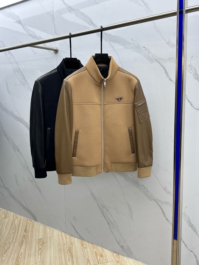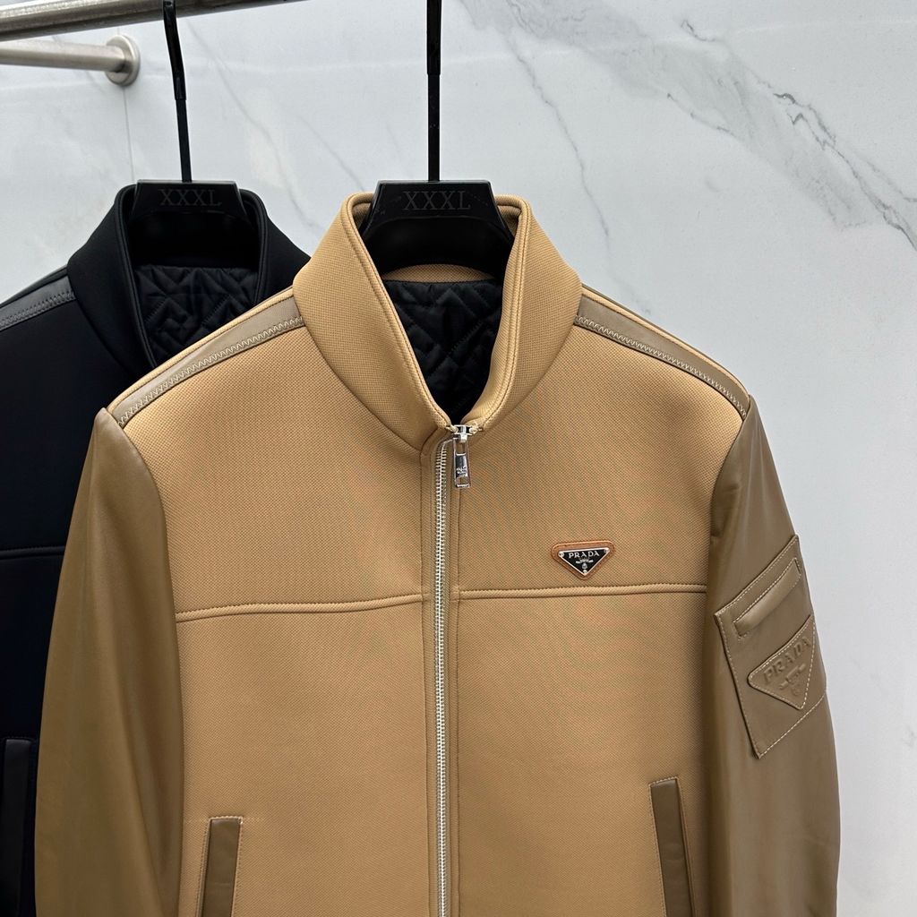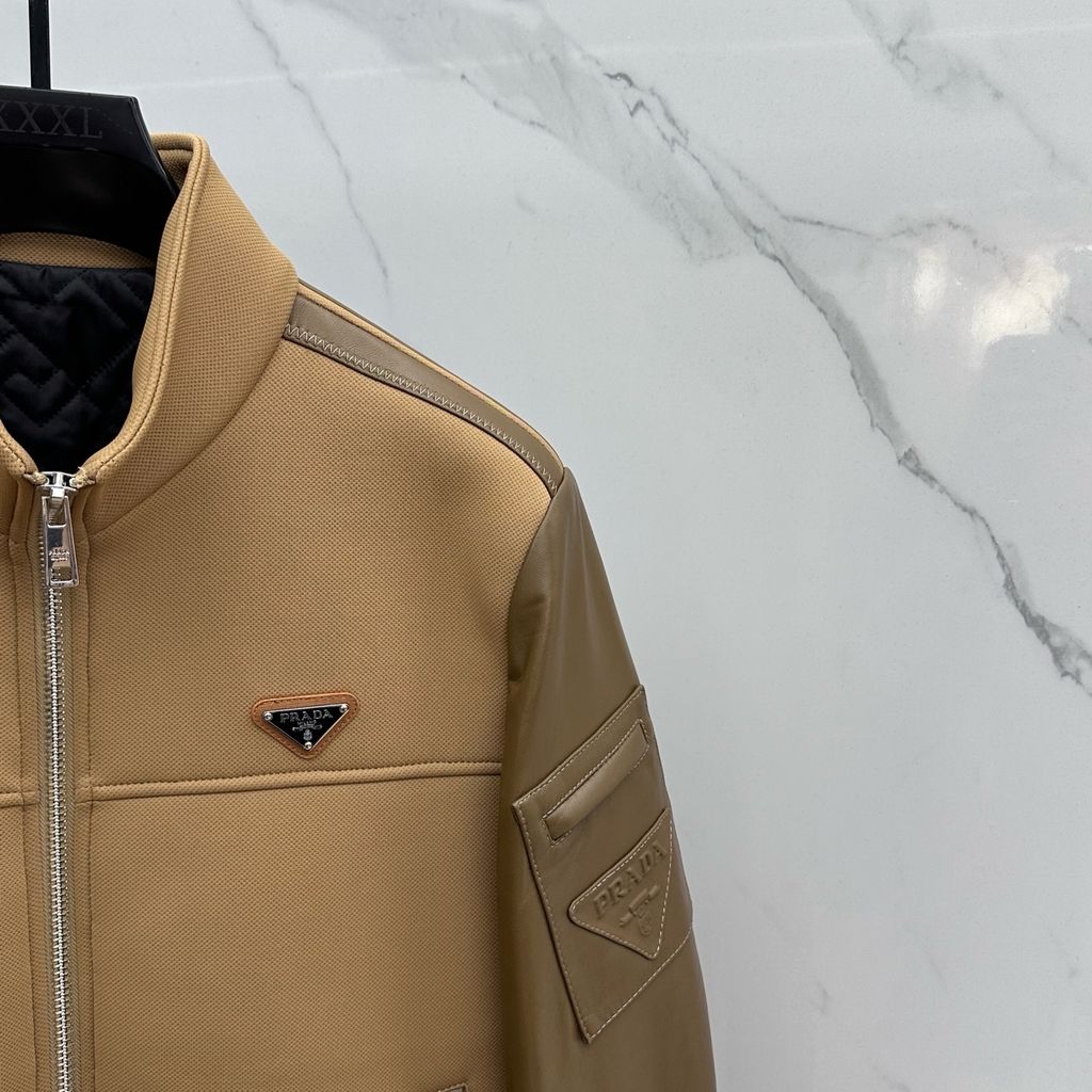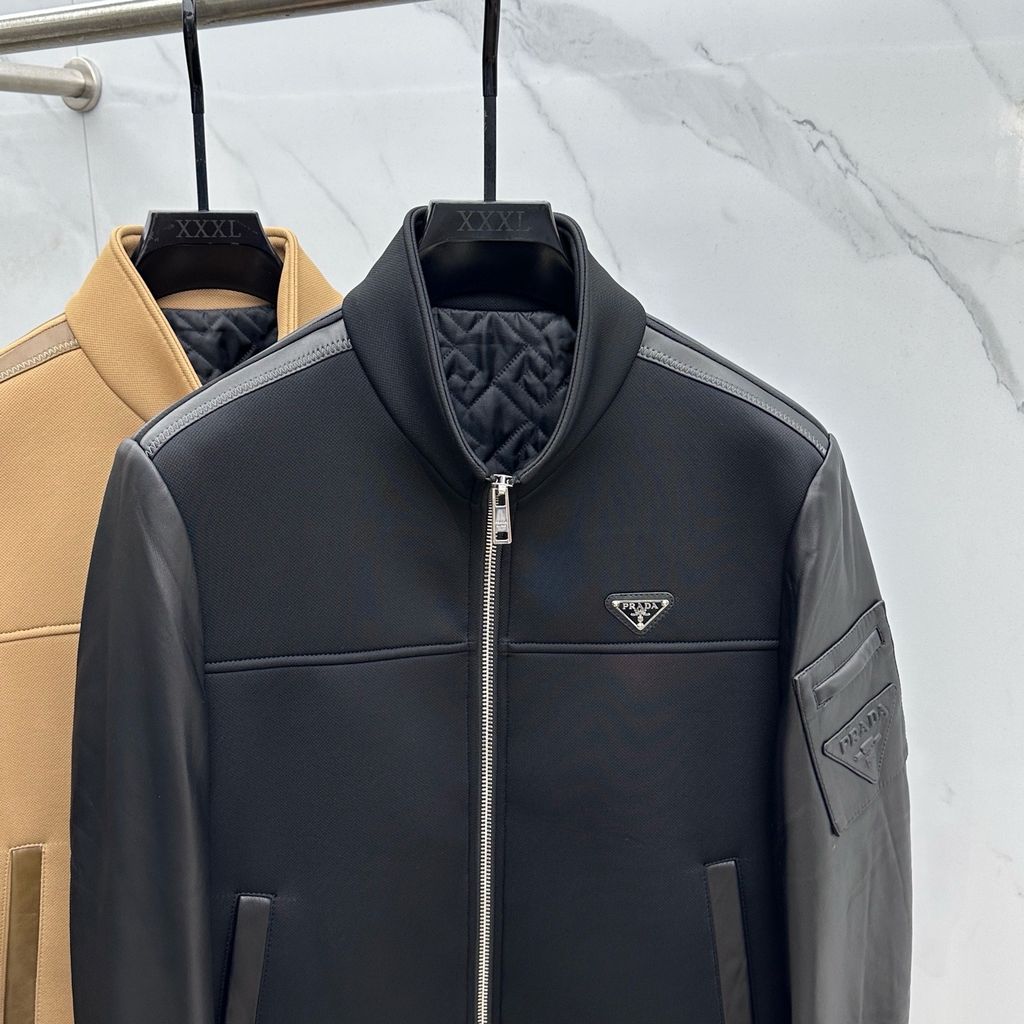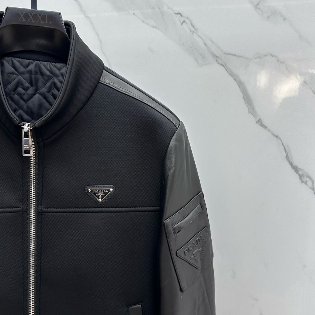 ÁO KHOÁC NAM PRAD* CỔ ĐỨNG PHỐI DA – PHIÊN BẢN CAO CẤP 2950k (HÀNG ORDER QUỐC TẾ)